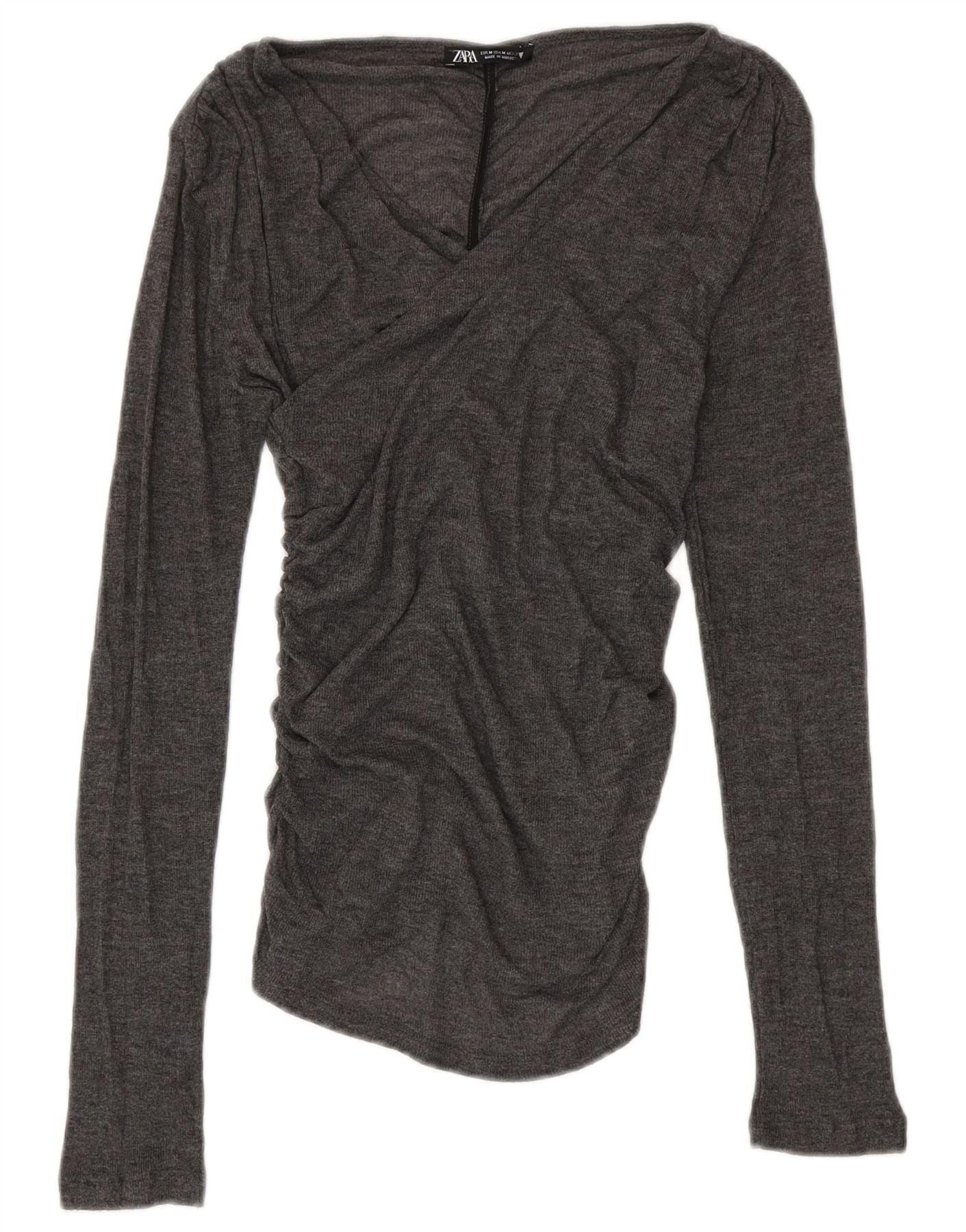 ZARA Blusa Mujer Top UK 42 Poliéster Gris Medio