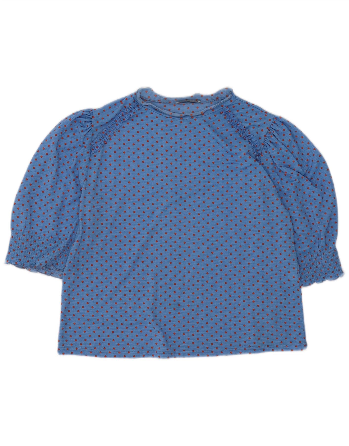 ZARA Blusa Mujer Top UK 44 Poliéster Manchado Azul Medio