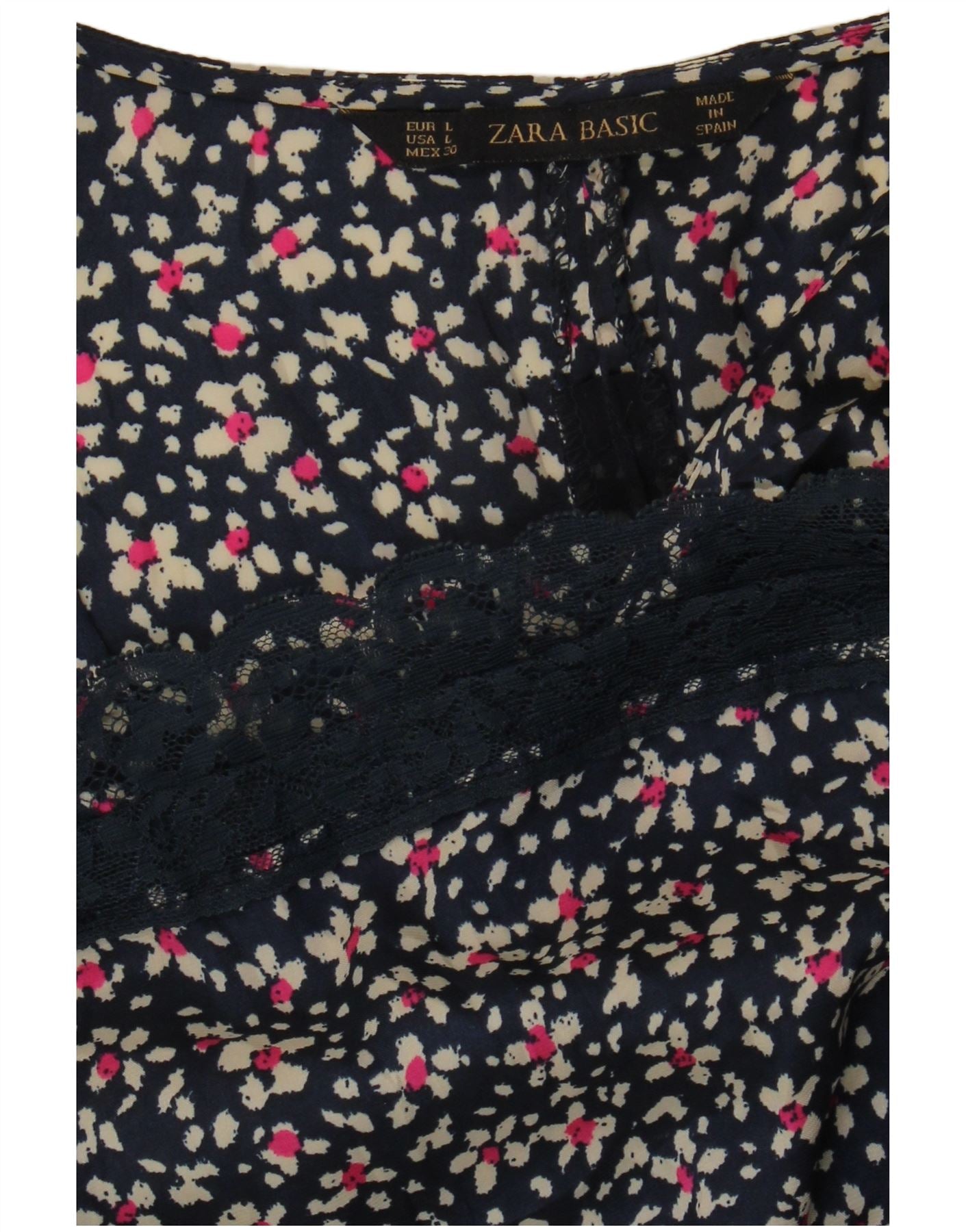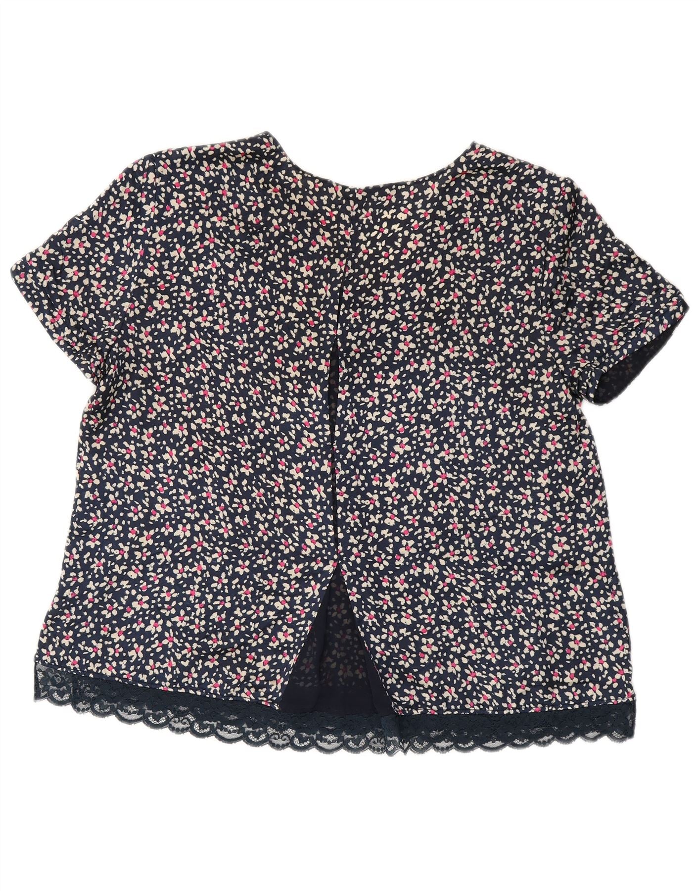ZARA Blusa Mujer Top UK 40 Grande Azul Marino Floral