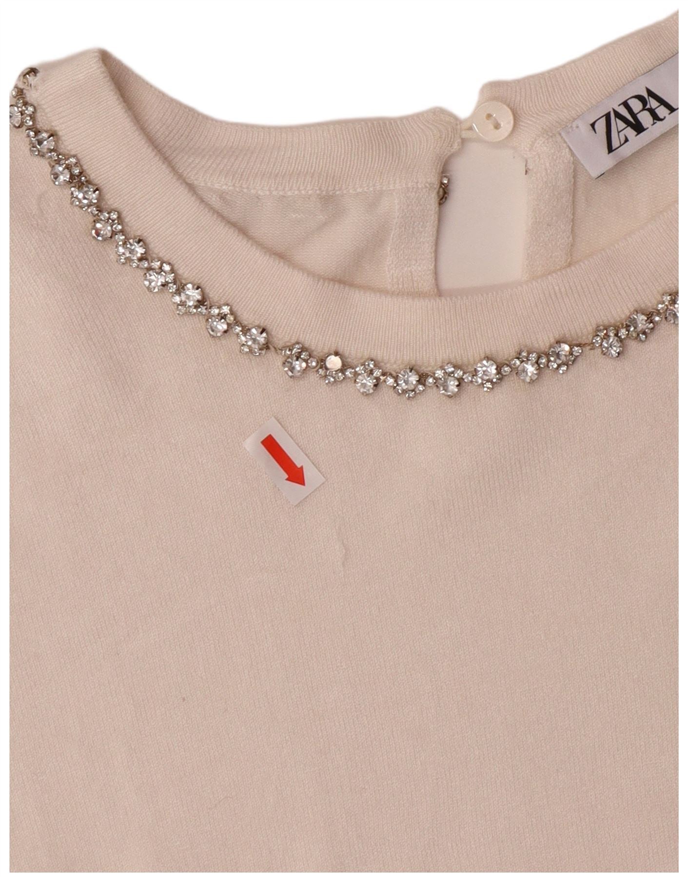 - Descripción de IA: Este jersey de mujer de Zara en punto blanco roto está confeccionado en una mezcla de viscosa. El cuello redondo y las mangas largas ofrecen una silueta clásica. Un ajuste regular garantiza un uso cómodo. El estilo jersey hace que sea fácil de llevar. Los detalles de diamantes de imitación alrededor del escote añaden un toque de glamour sutil. Una pieza versátil para usar en capas o sola.