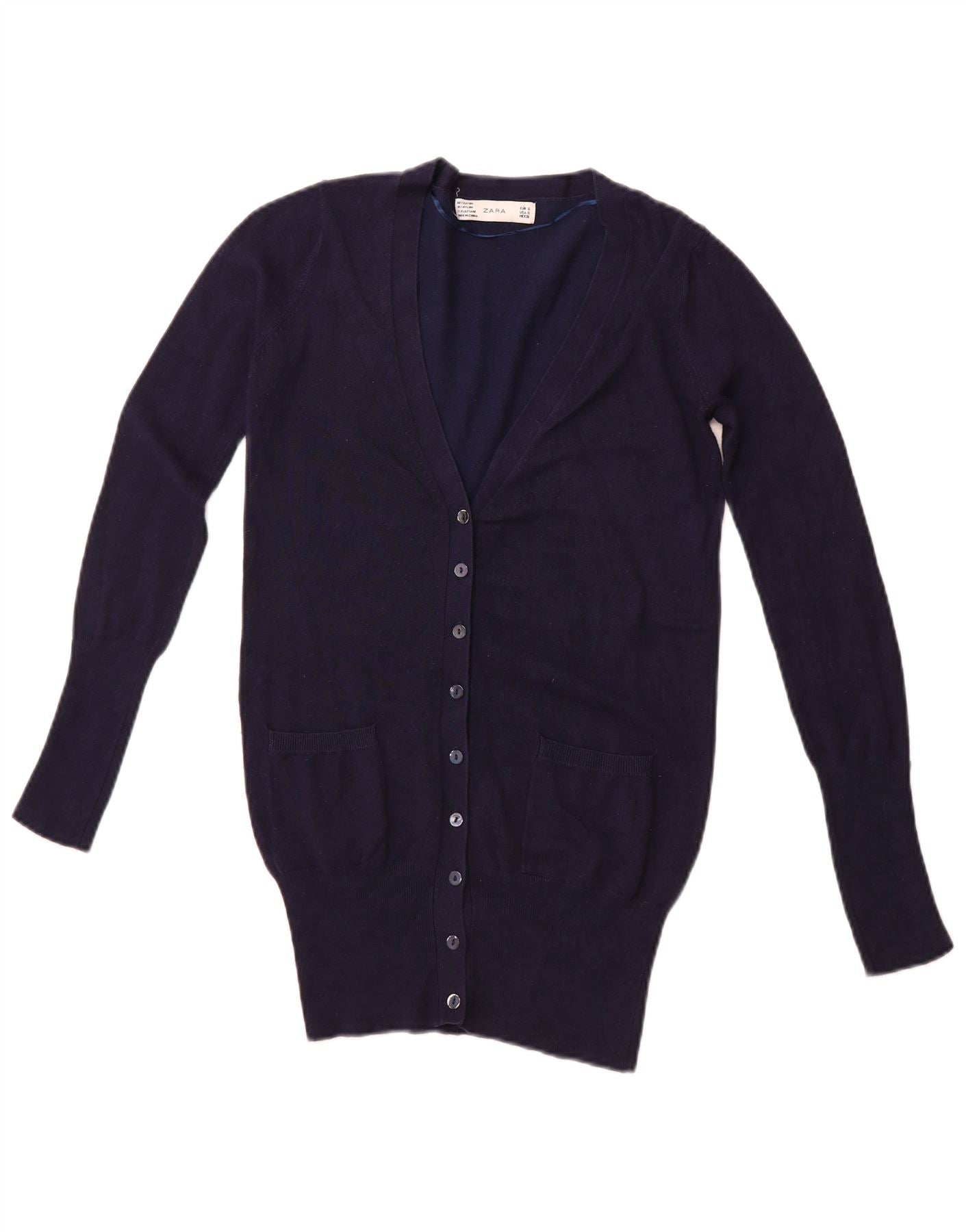 ZARA Mujer Cárdigan Suéter UK 10 Small Azul Marino Rayón