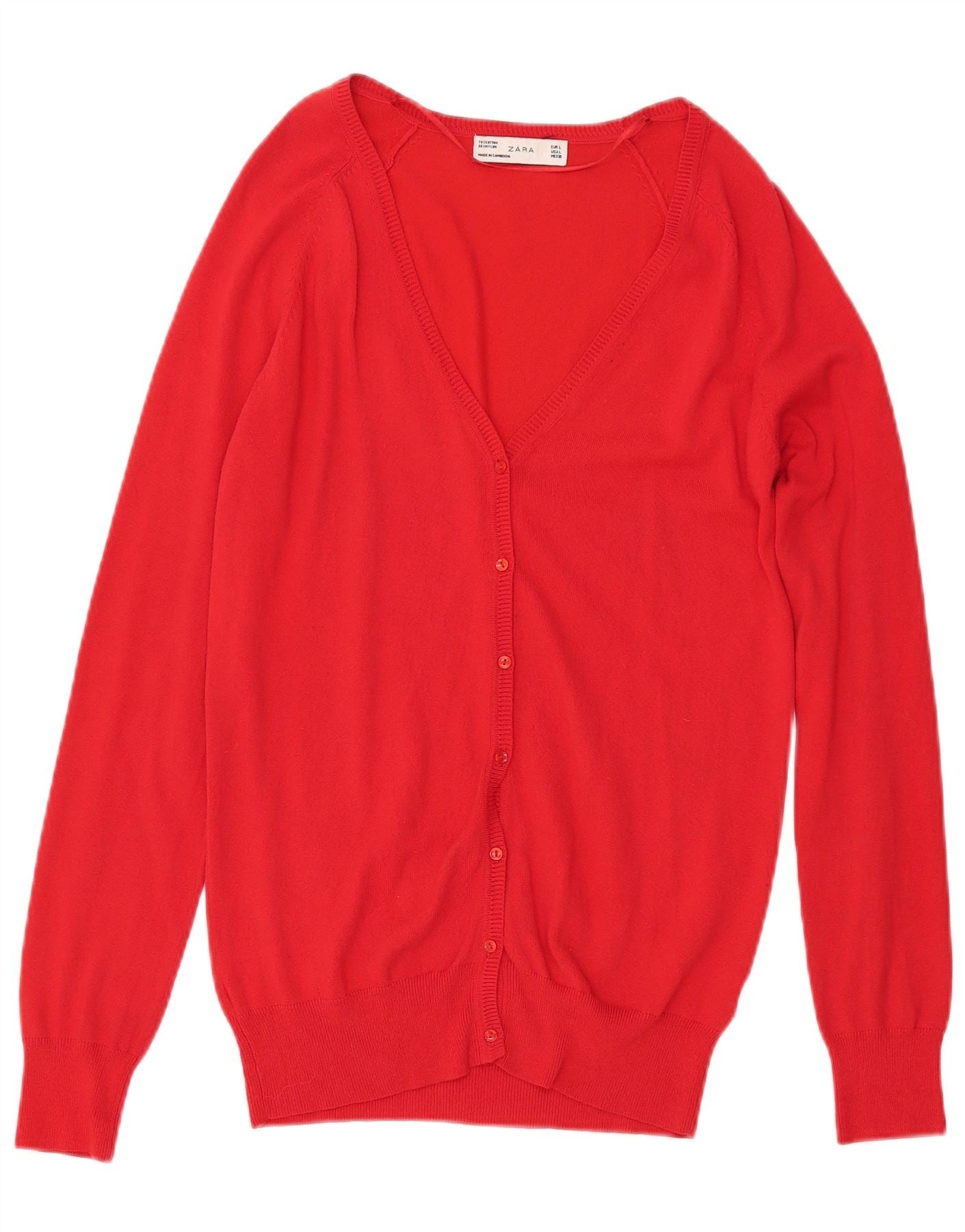 Zara Mujer Cárdigan Suéter UK 46 Grande Algodón Rojo