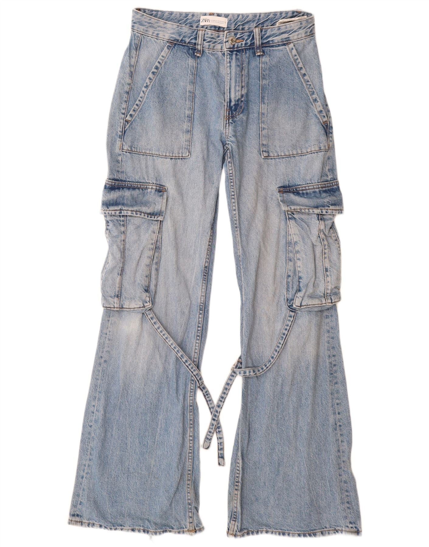 ZARA Vaqueros Cargo Acampanados Mujer EU 34 2XS W24 L32 Algodón Azul
