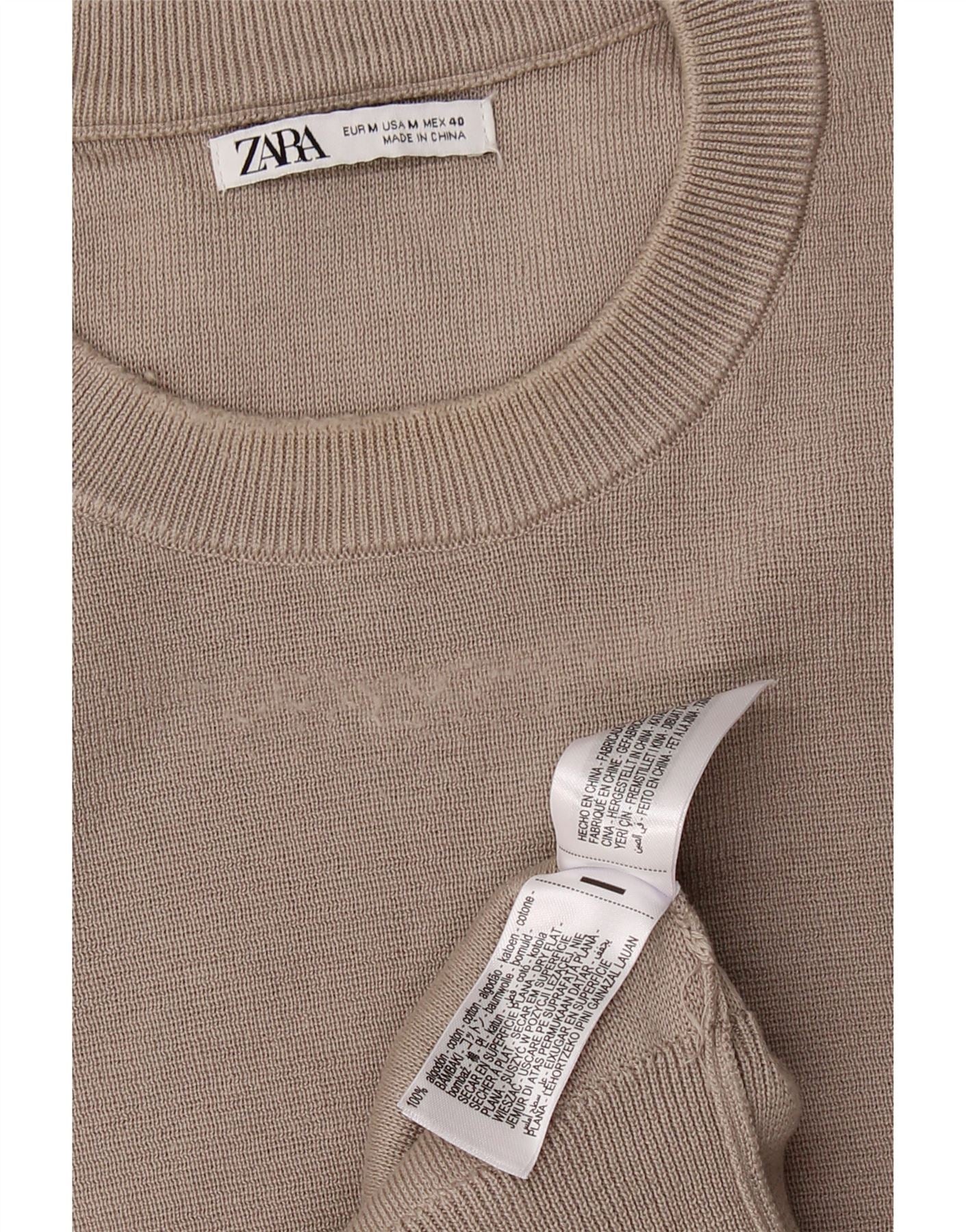ZARA Jersey de cuello redondo para mujer UK 44 Algodón gris medio