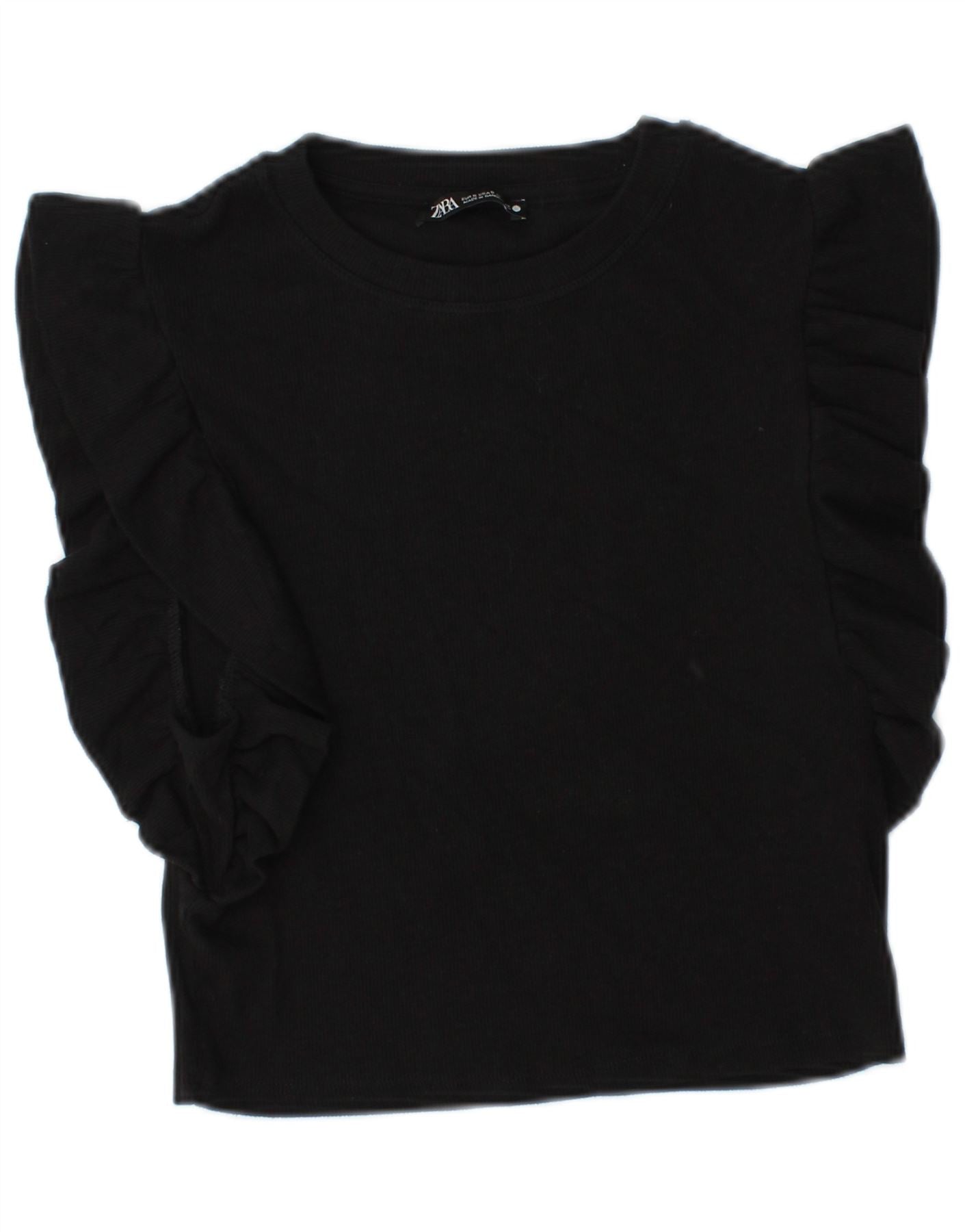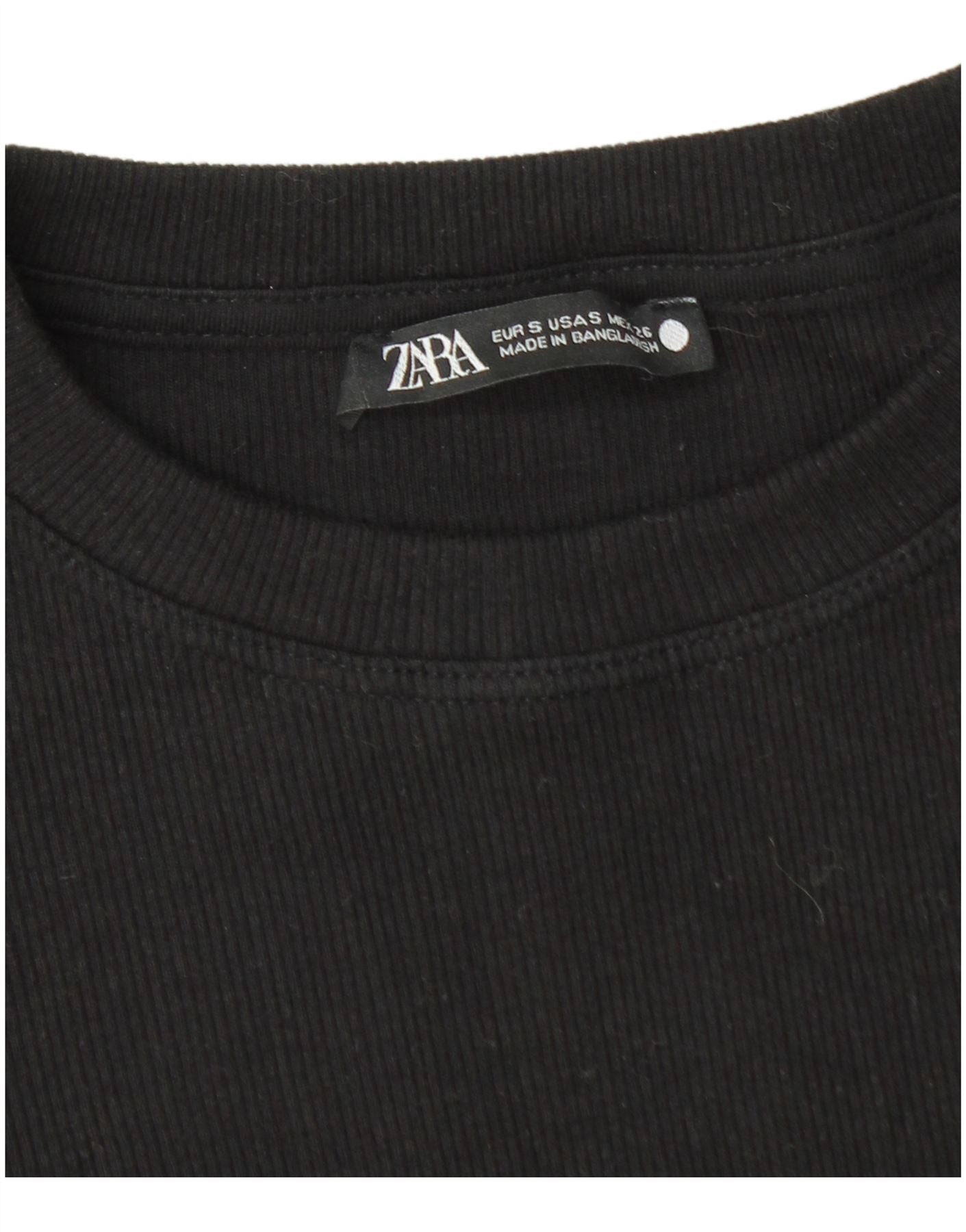 Zara Mujer Blusa Corta Top Reino Unido 8 Pequeño Algodón Negro