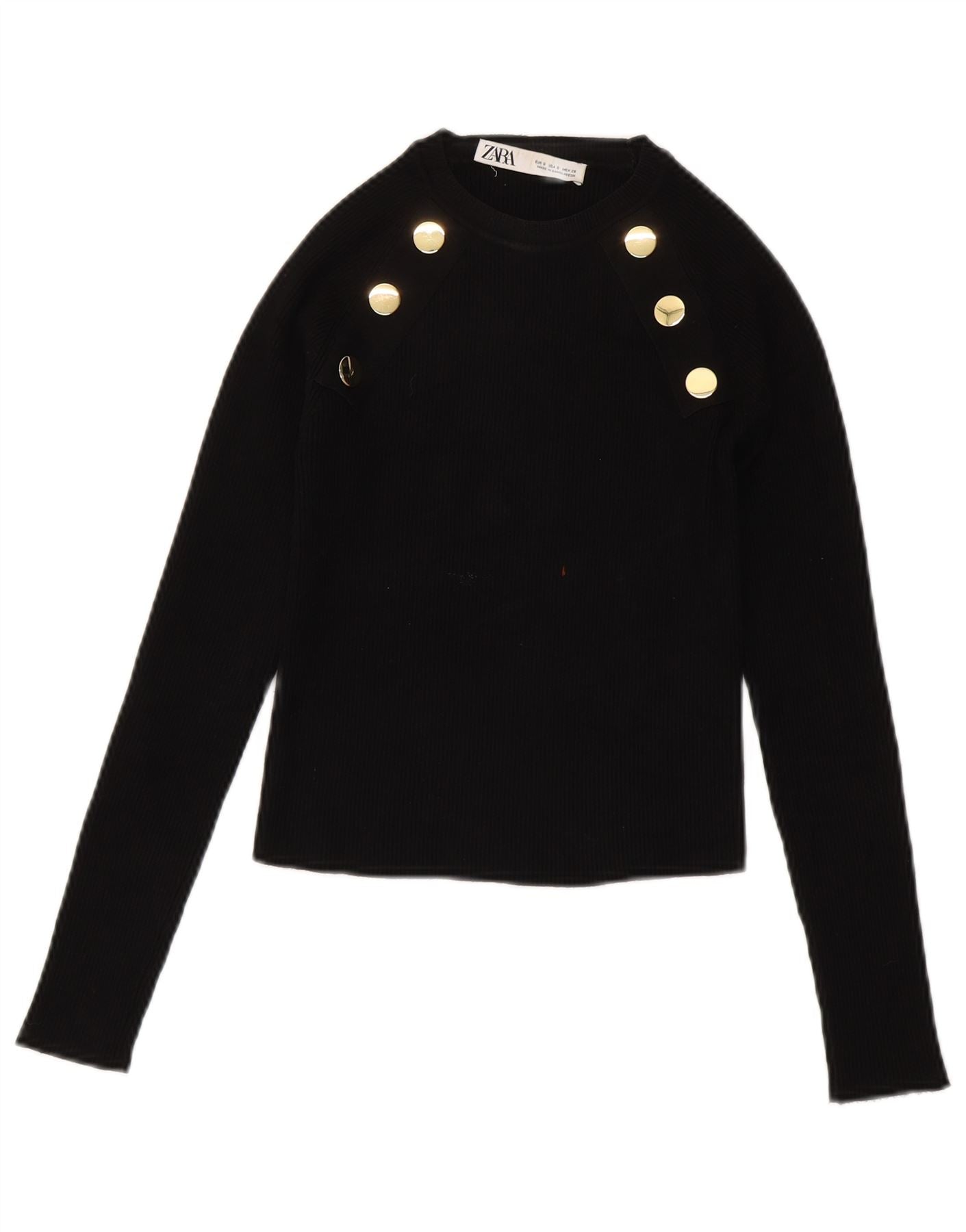 ZARA Jersey Corto con Cuello Barco para Mujer UK 8 Small Viscosa Negra