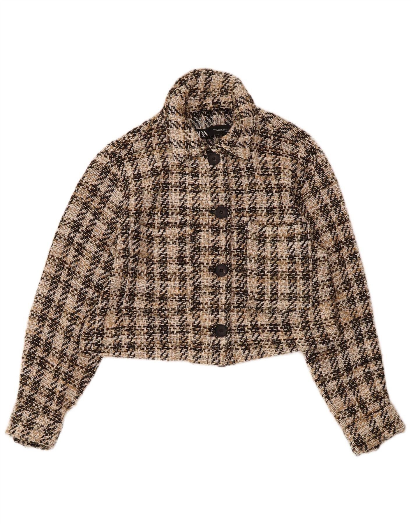 ZARA Chaqueta Bomber Corta para Mujer UK 10 Small Beige Check Cotton