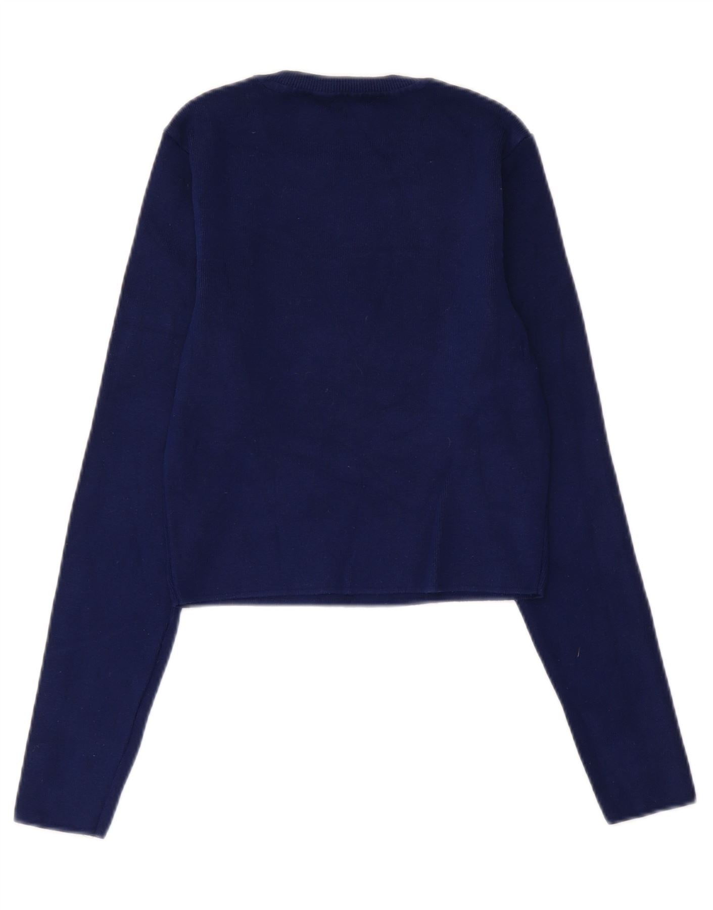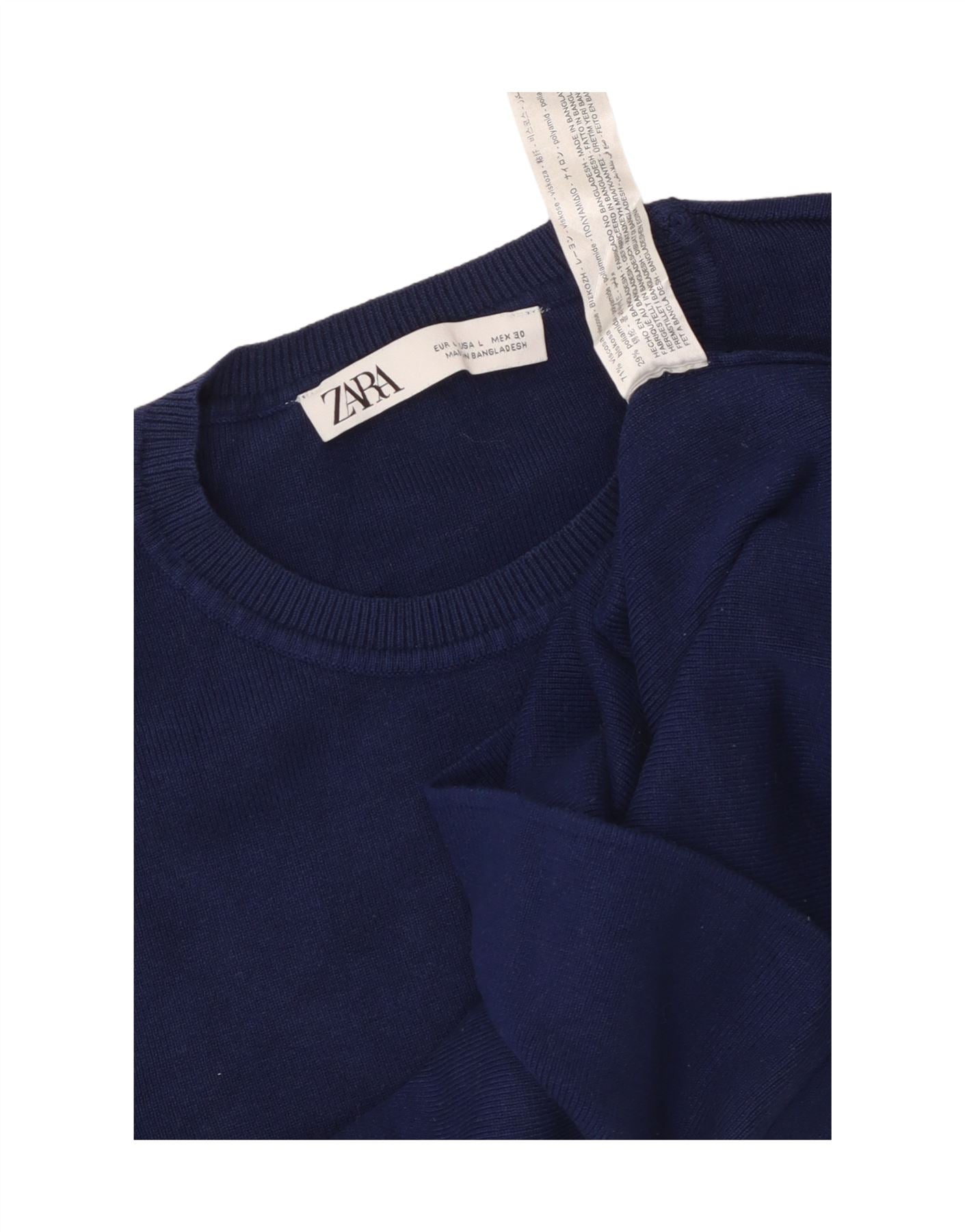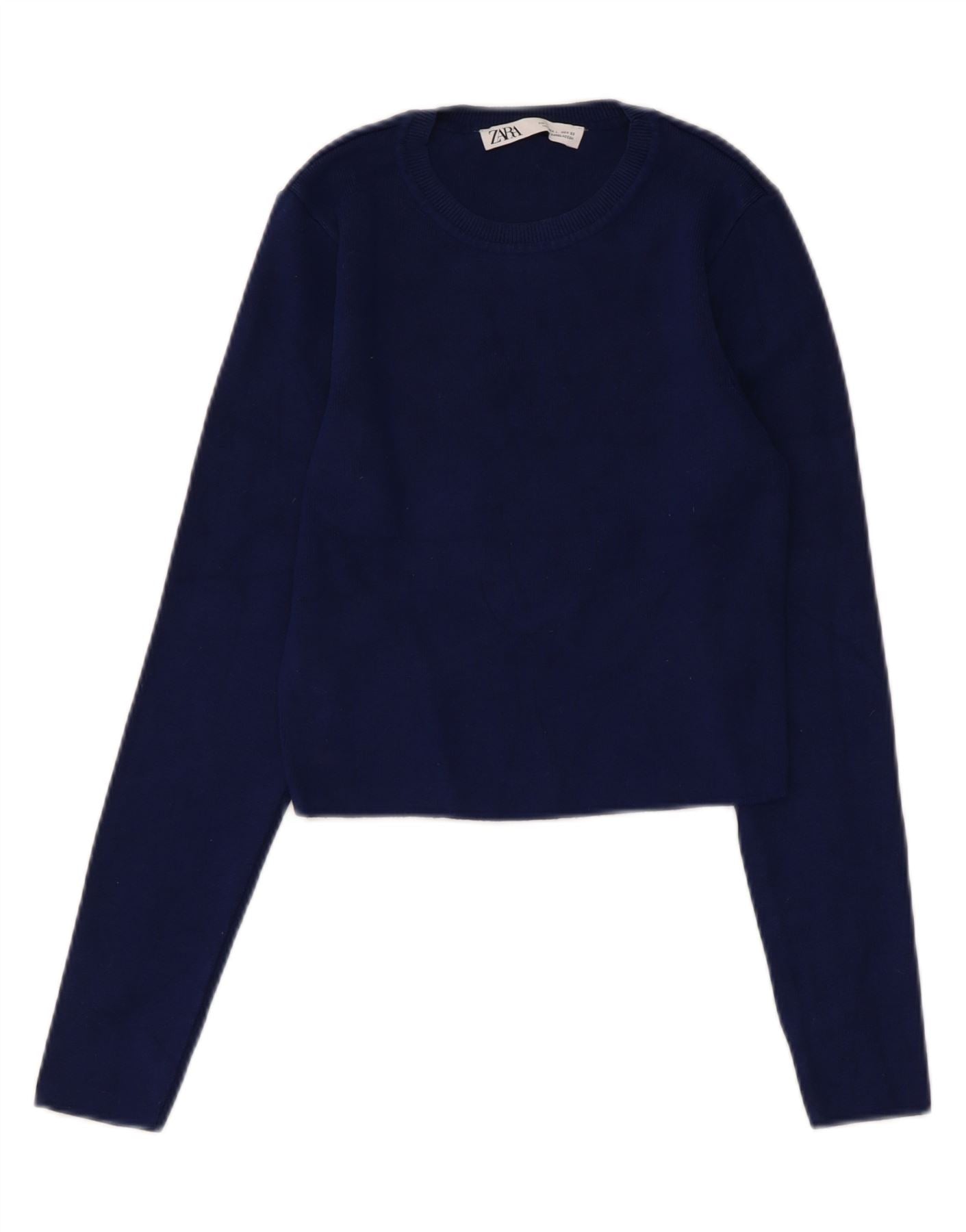 ZARA Womens Crop Crew Neck Jumper Sweater UK 14 Large Navy Blue Viscose