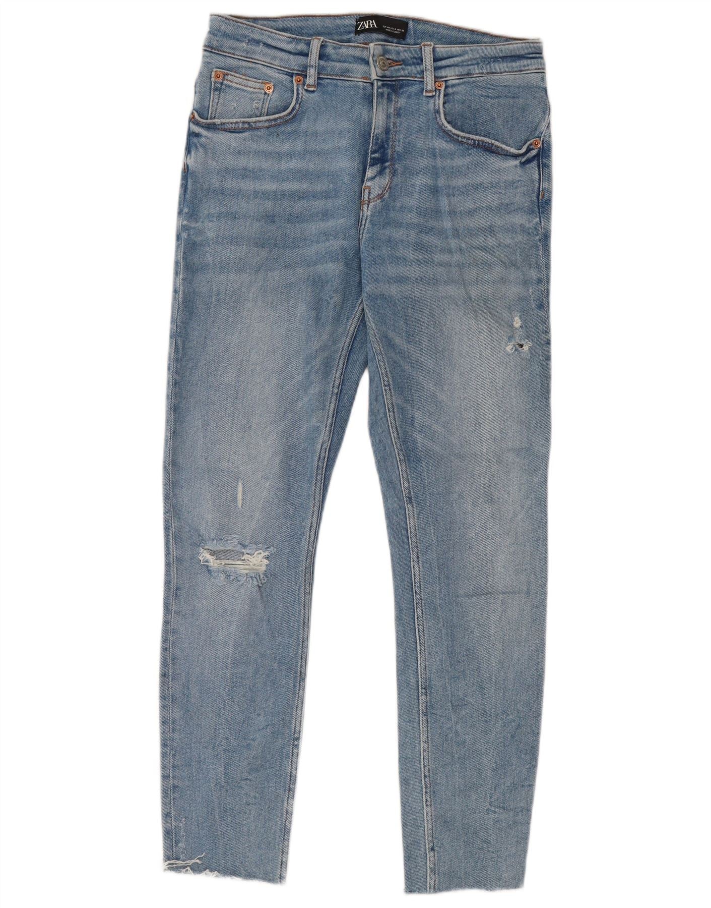 ZARA Vaqueros pitillo desgastados cortos para mujer EU 40 Medium W30 L26 Algodón azul