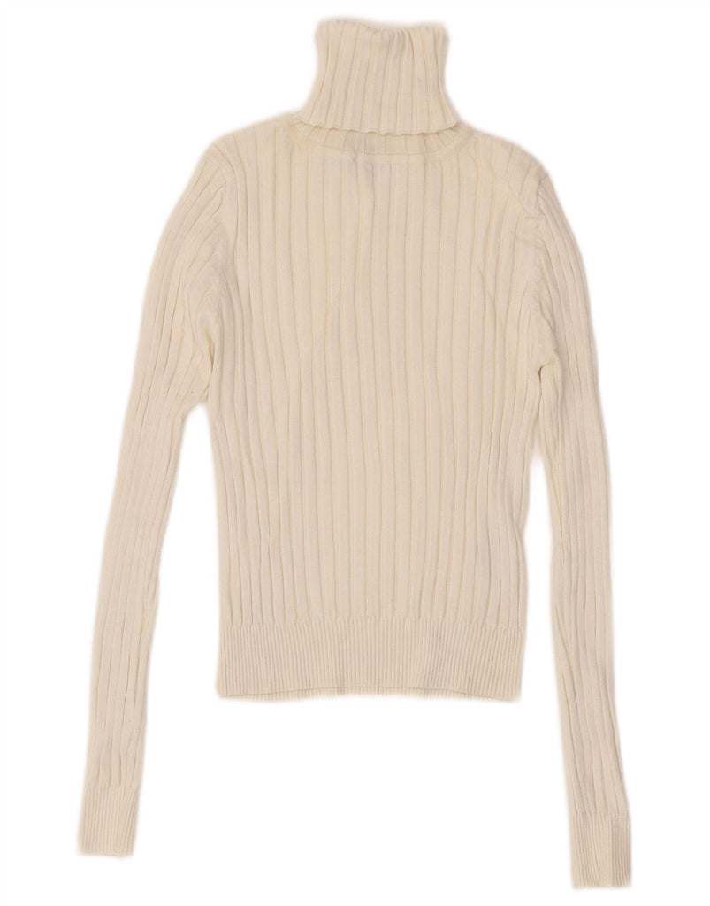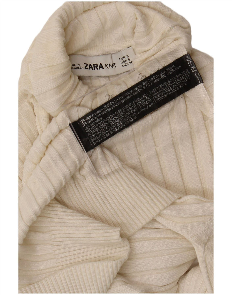 ZARA Womens Crop Roll Neck Jumper Sweater UK 8 Small Off White Viscose