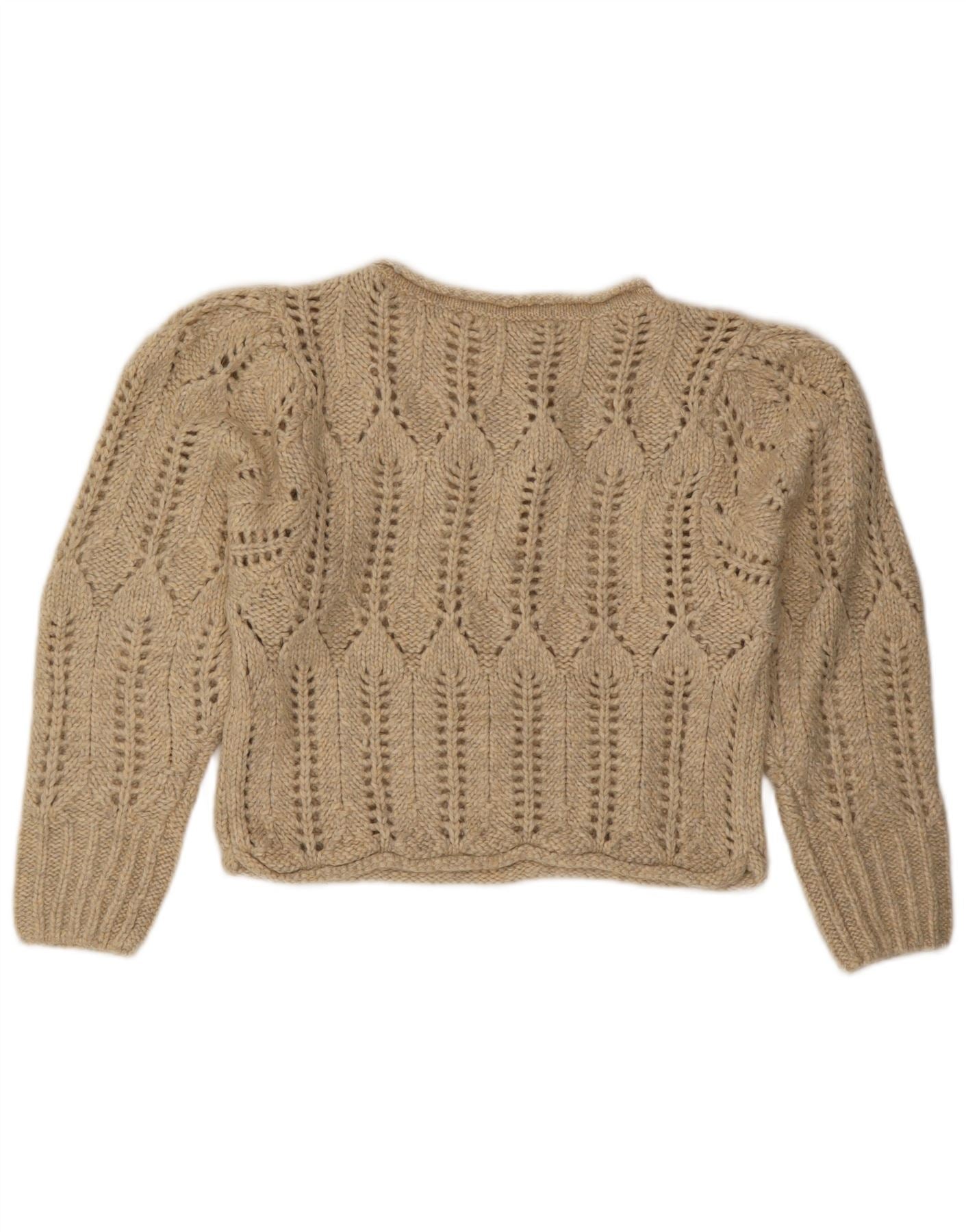 ZARA Mujer Crop See Through Boat Neck Jumper Sweater UK 44 Medio Beige