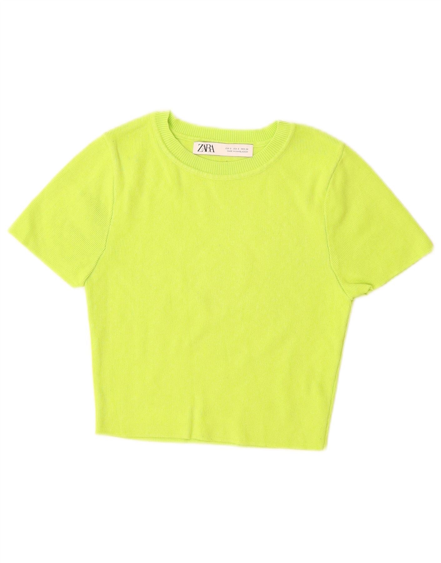 ZARA Mujer Crop Manga Corta Cuello Barco Jersey Jersey UK 8 Small Verde