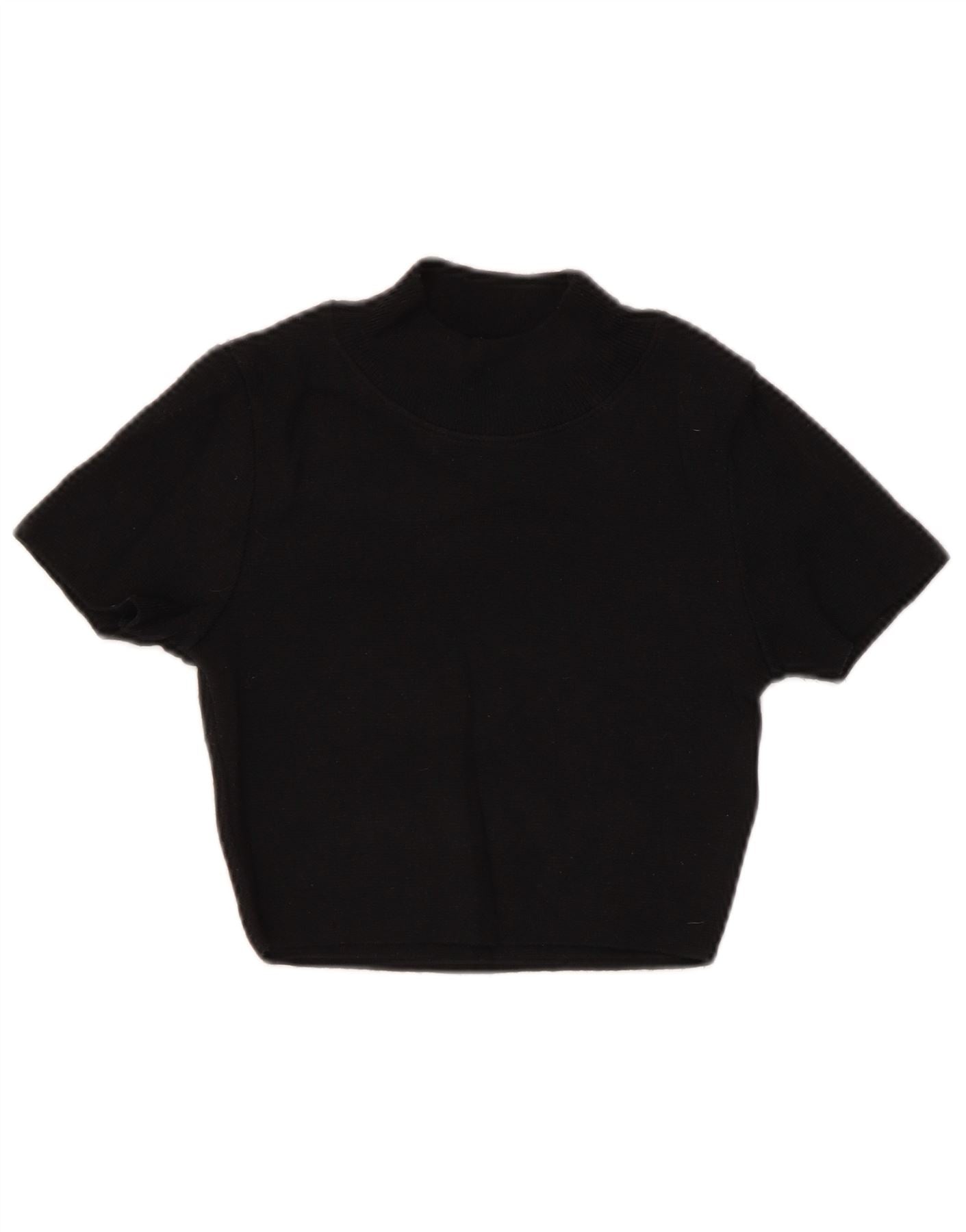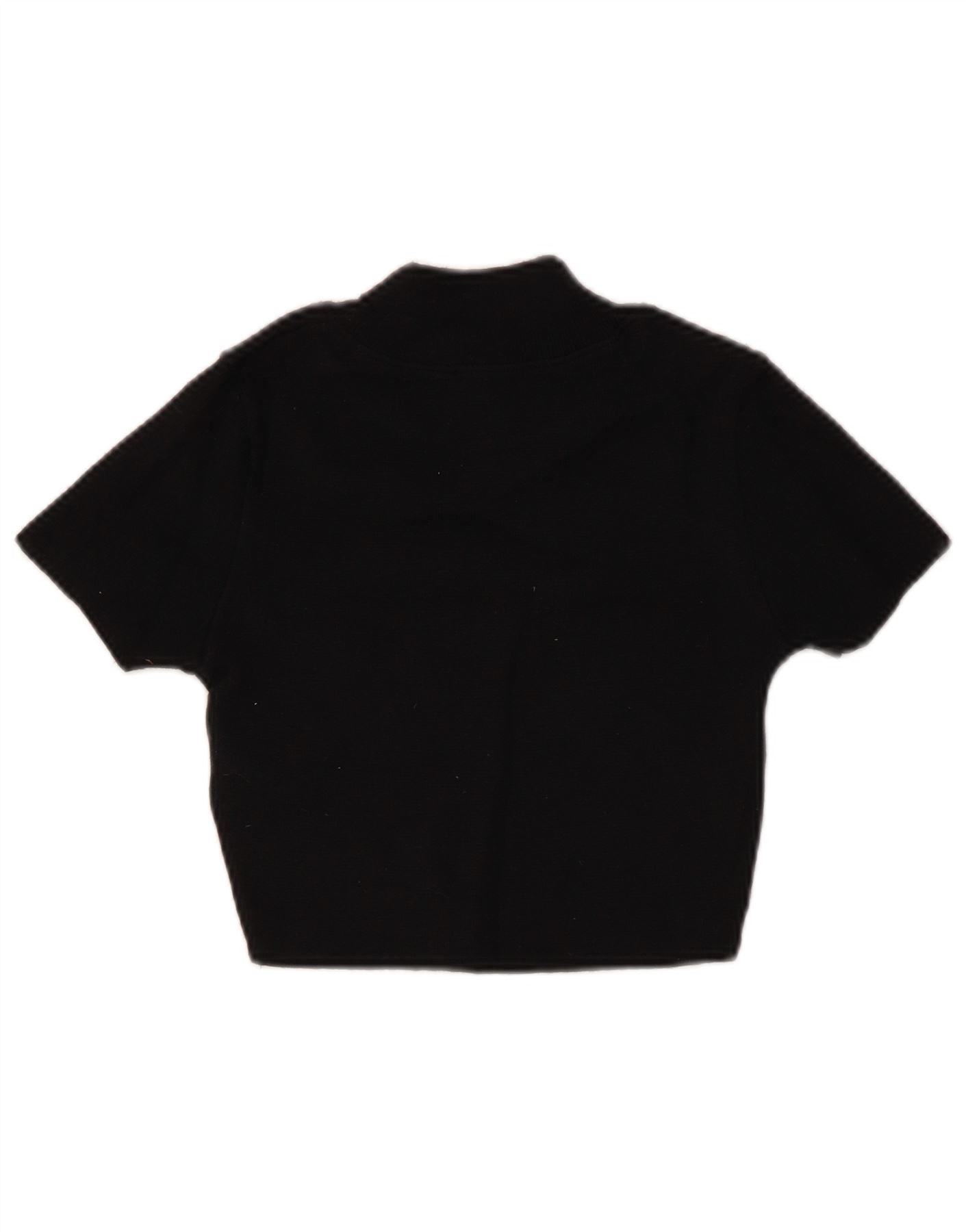 ZARA Mujer Crop Manga Corta Cuello Alto Jersey Jersey UK 8 Small Negro