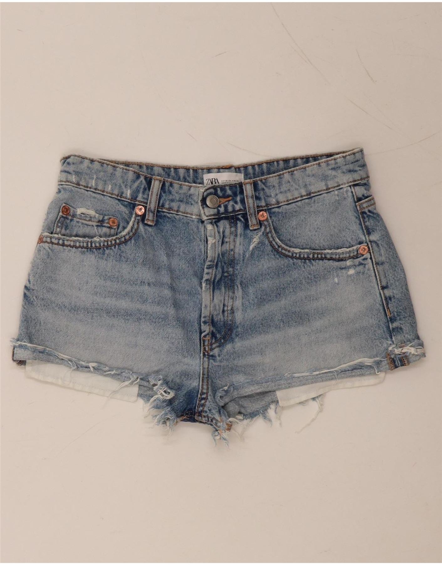 ZARA Mujer Shorts Vaqueros Desgastados EU 36 XS W26 Algodón Azul