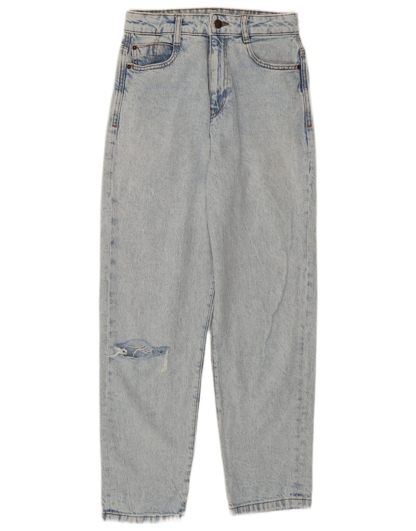 Zara Vaqueros desgastados de cintura alta para mujer EU 36 XS W26 L27 Algodón azul