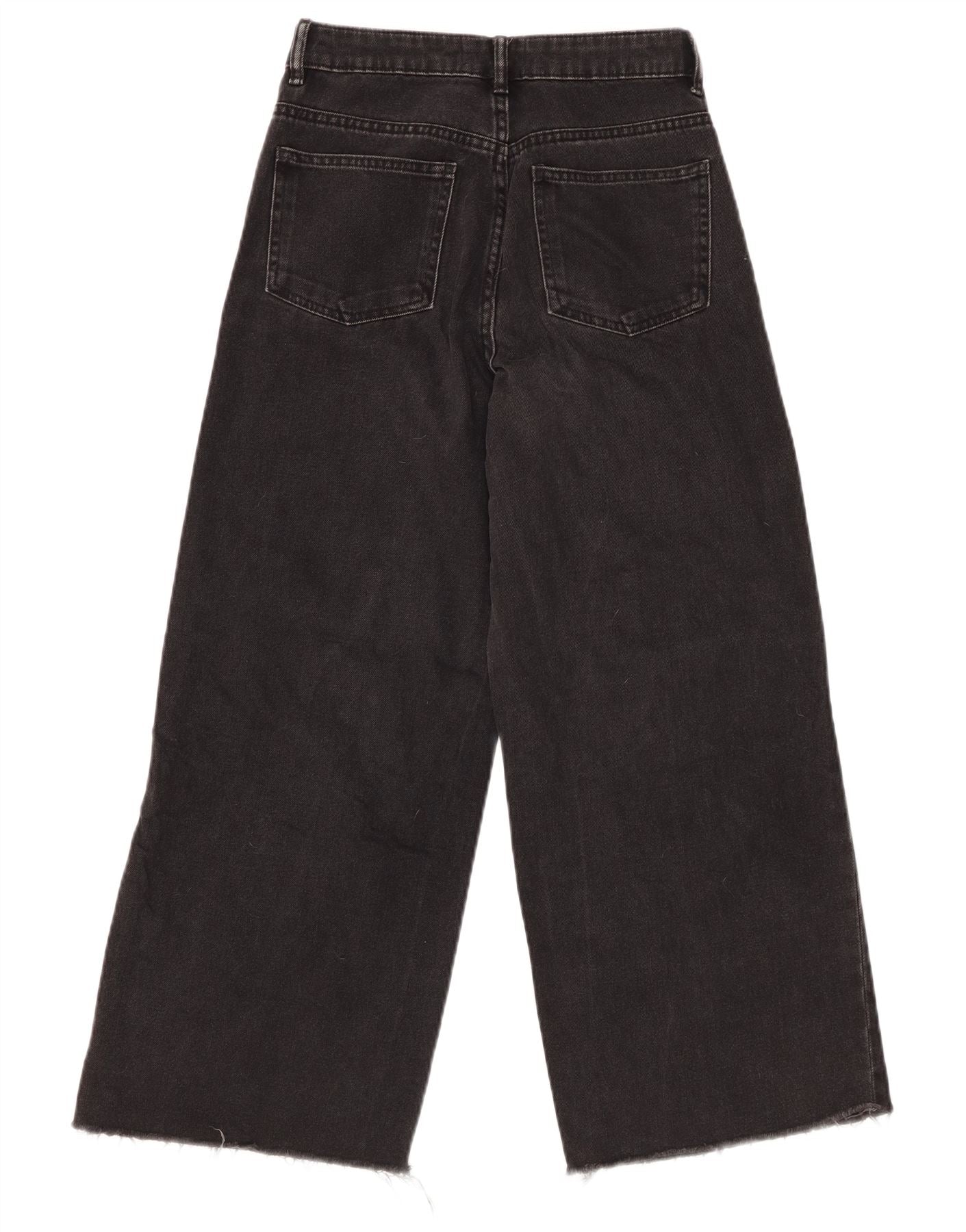 ZARA Mujer Vaqueros Crop De Pierna Ancha De Talle Alto W22 L25 Algodón Negro