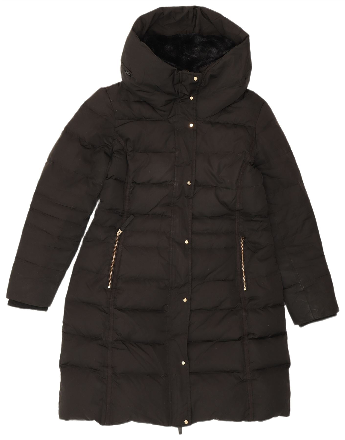 ZARA Mujer Abrigo Acolchado Con Capucha ES 40 XL Negro