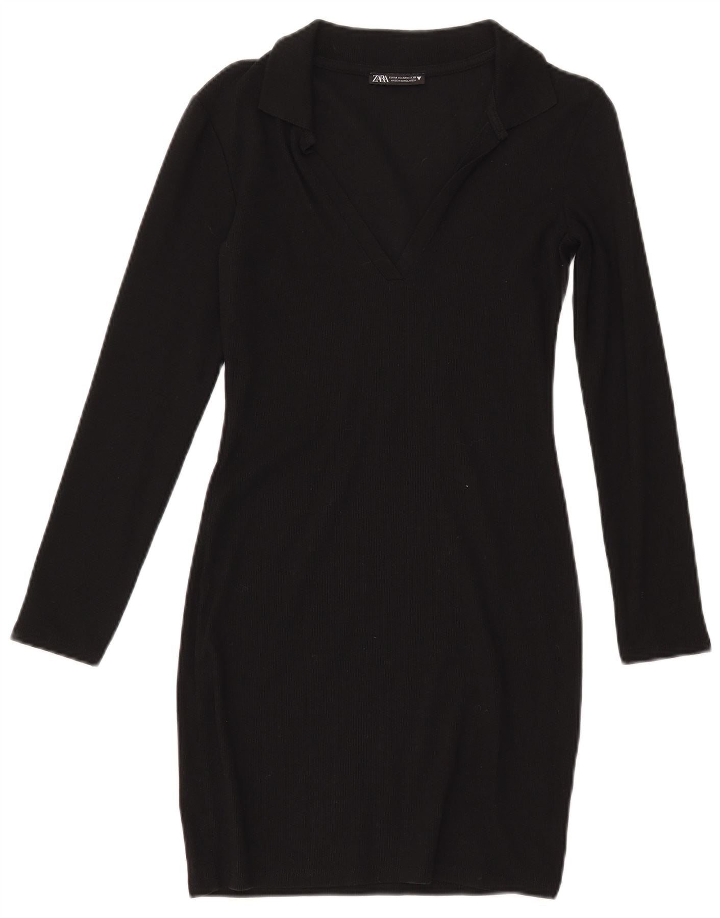 ZARA Vestido polo de manga larga para mujer UK 40 Mediano Algodón negro