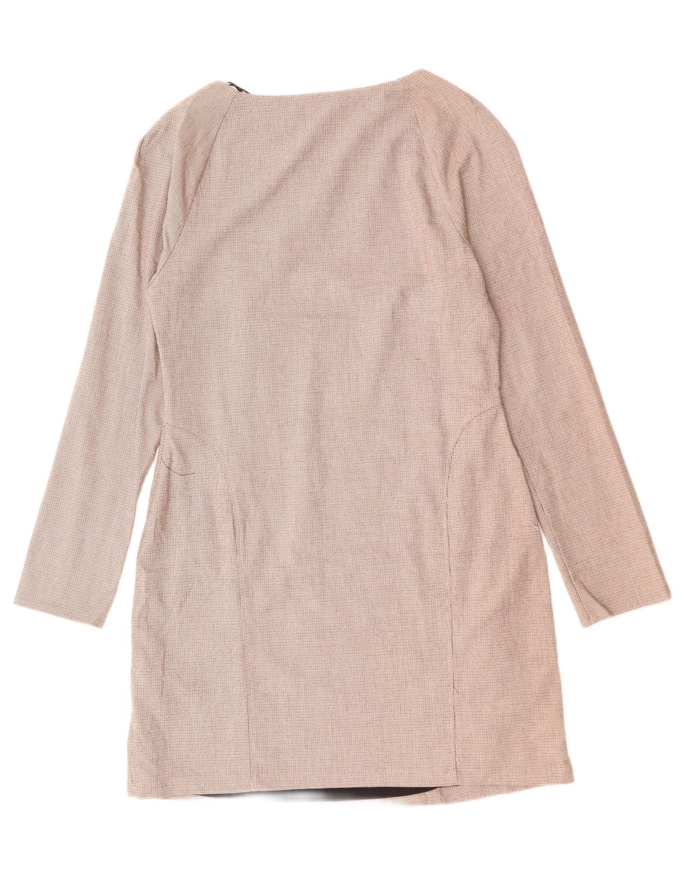 ZARA Vestido tubo de manga larga para mujer ES 40 2XL Poliéster a cuadros beige