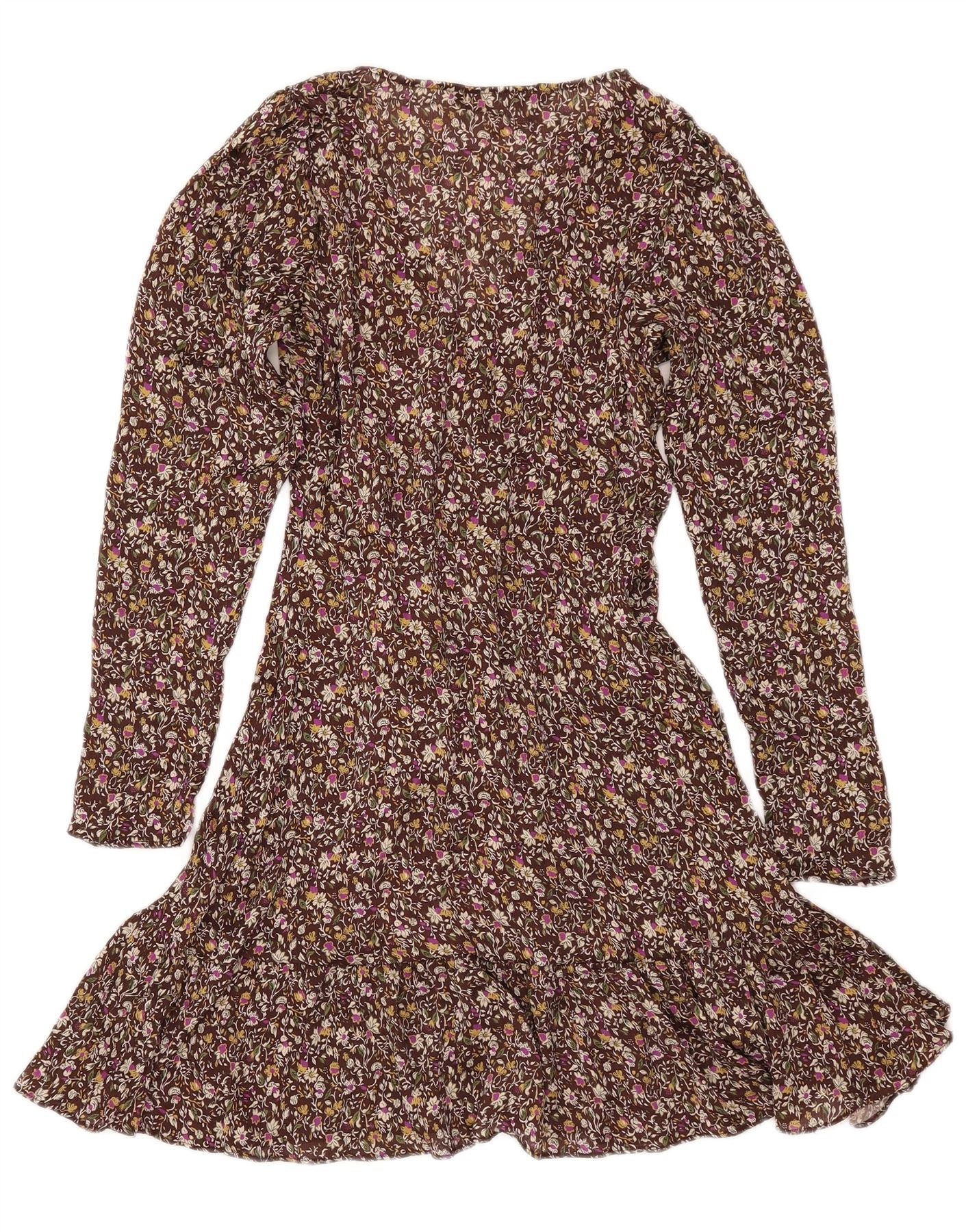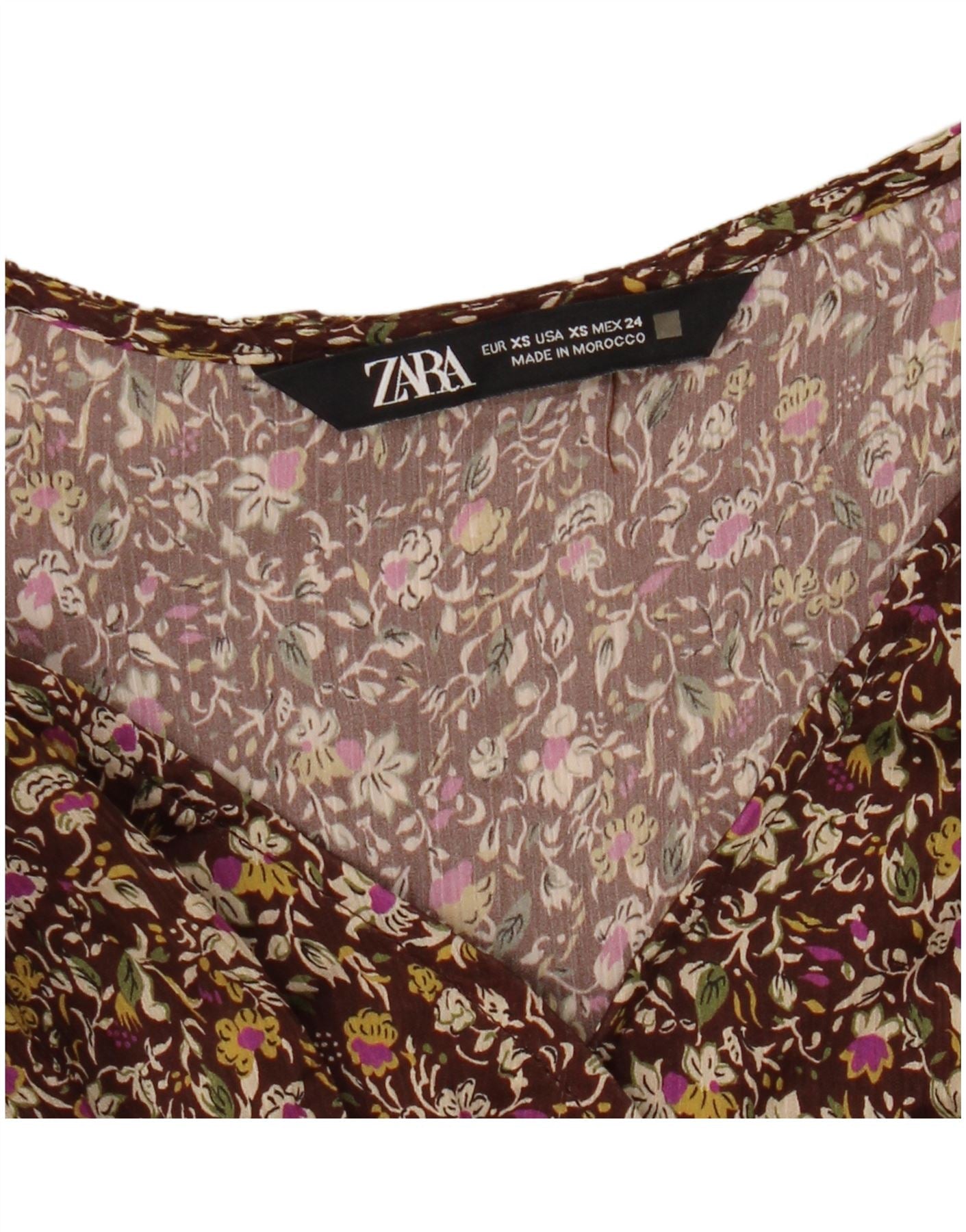 ZARA Vestido cruzado de manga larga para mujer UK 6 XS Marrón Floral