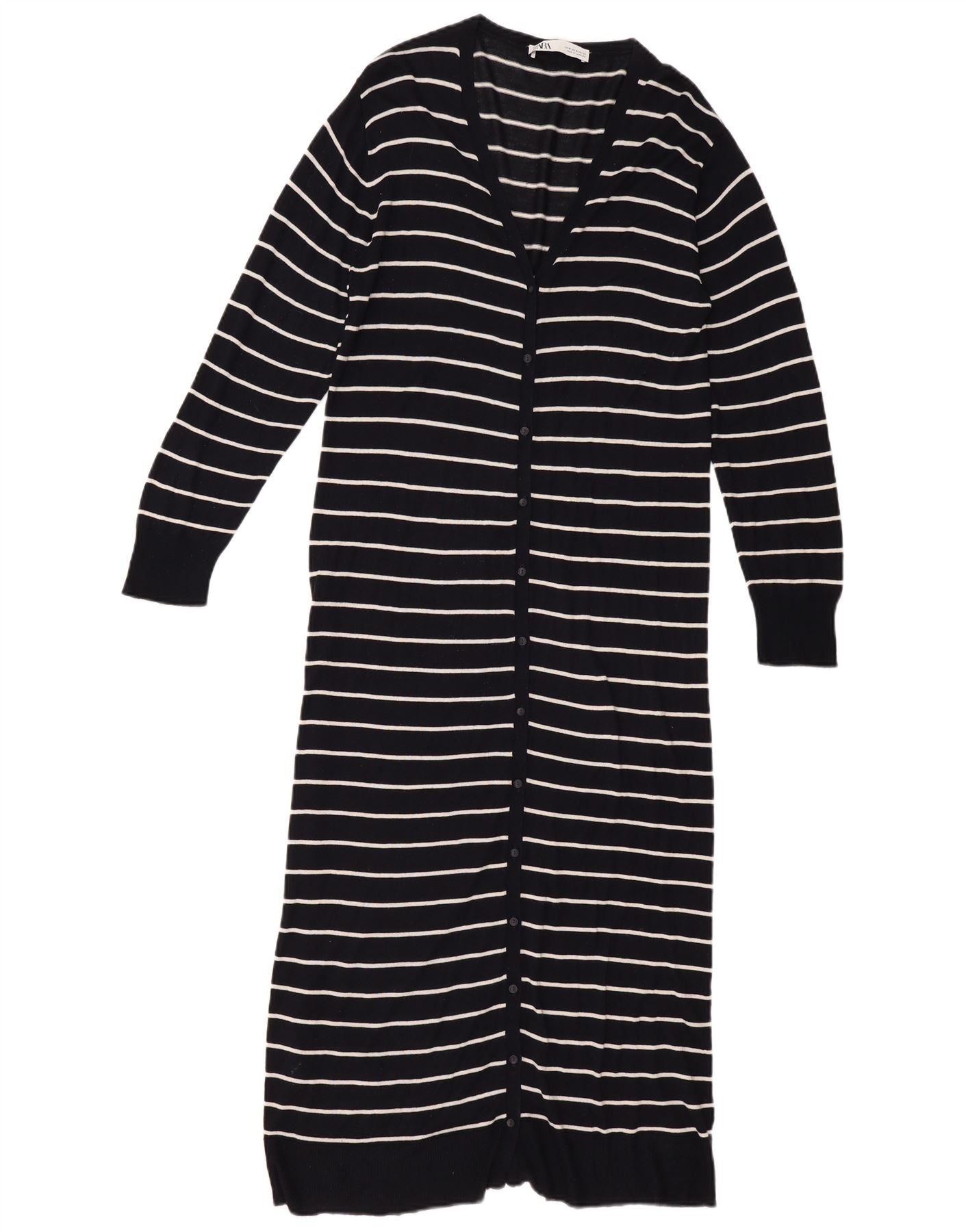 Home > De las mujeres > Ropa Depop > Zara Mujer Jersey Cárdigan Largo UK 40 Medio Viscosa Rayas Negras