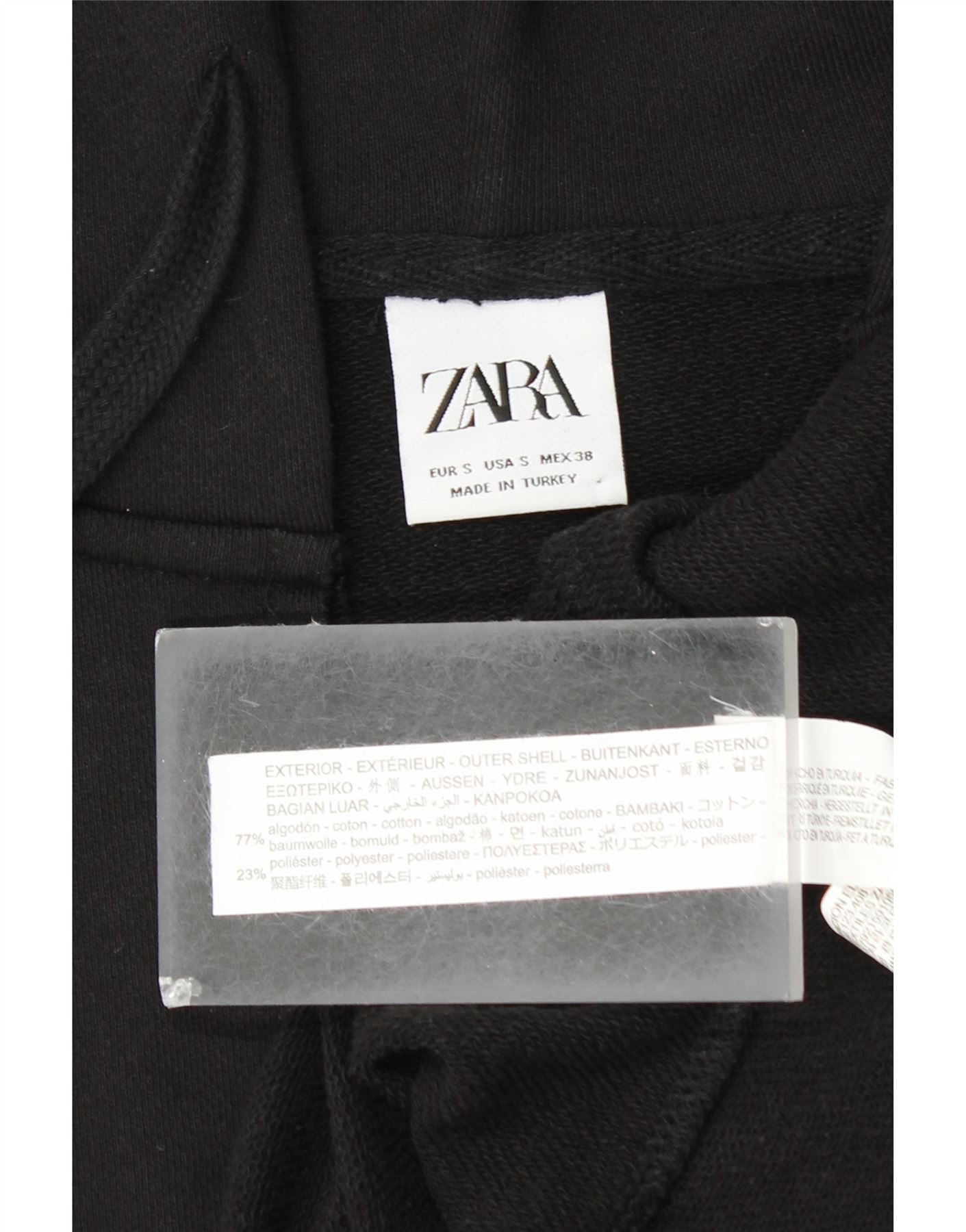 ZARA Cárdigan largo con capucha para mujer, talla 40, talla pequeña, algodón negro