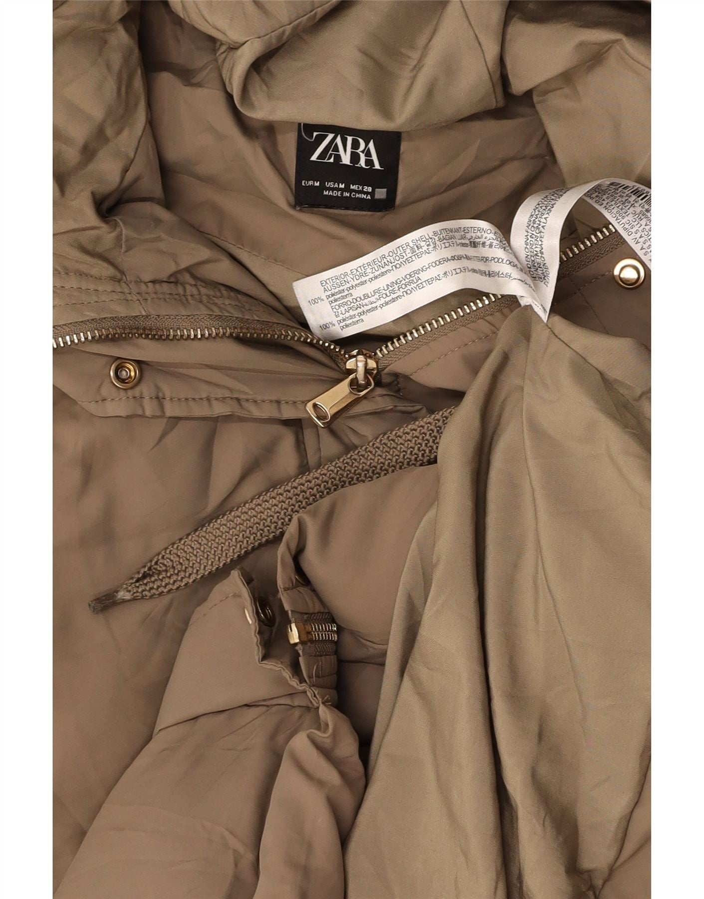 ZARA Mujer Chaleco Largo Acolchado Con Capucha UK 42 Poliéster Beige Medio