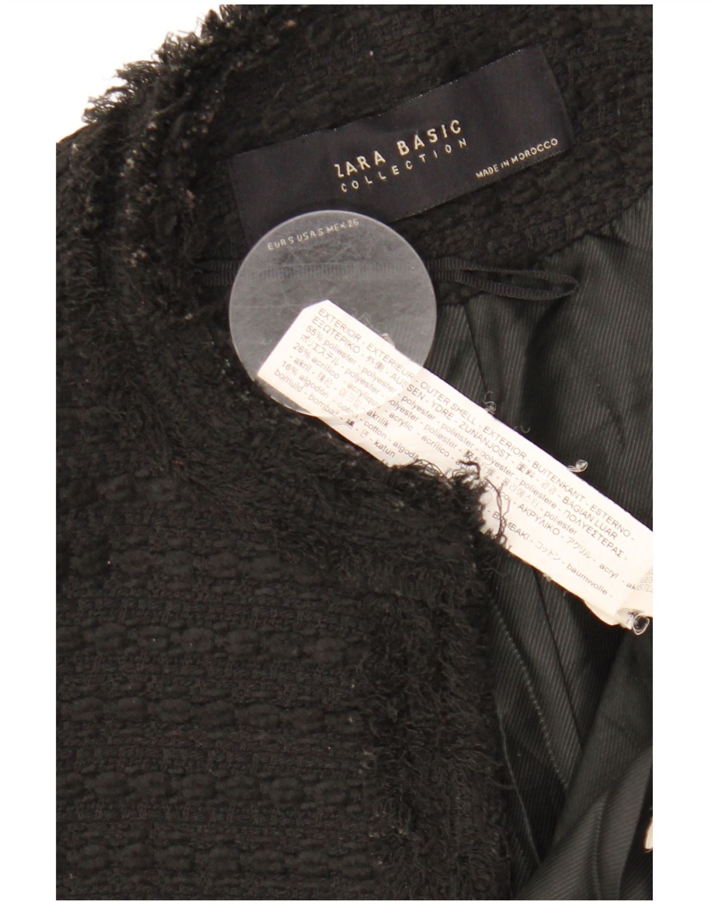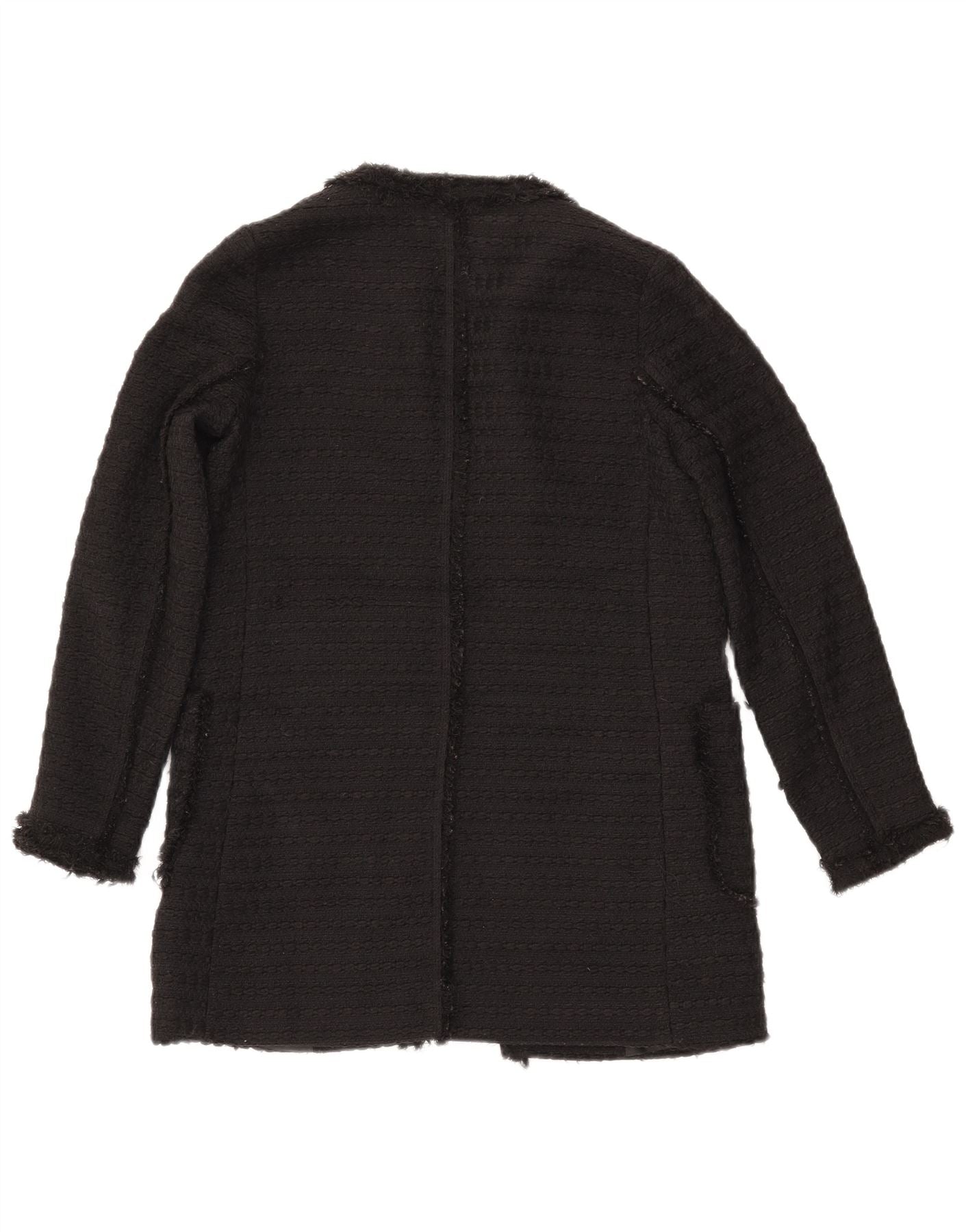 ZARA Chaqueta tipo blazer abierta larga para mujer UK 10 Small Poliéster negro