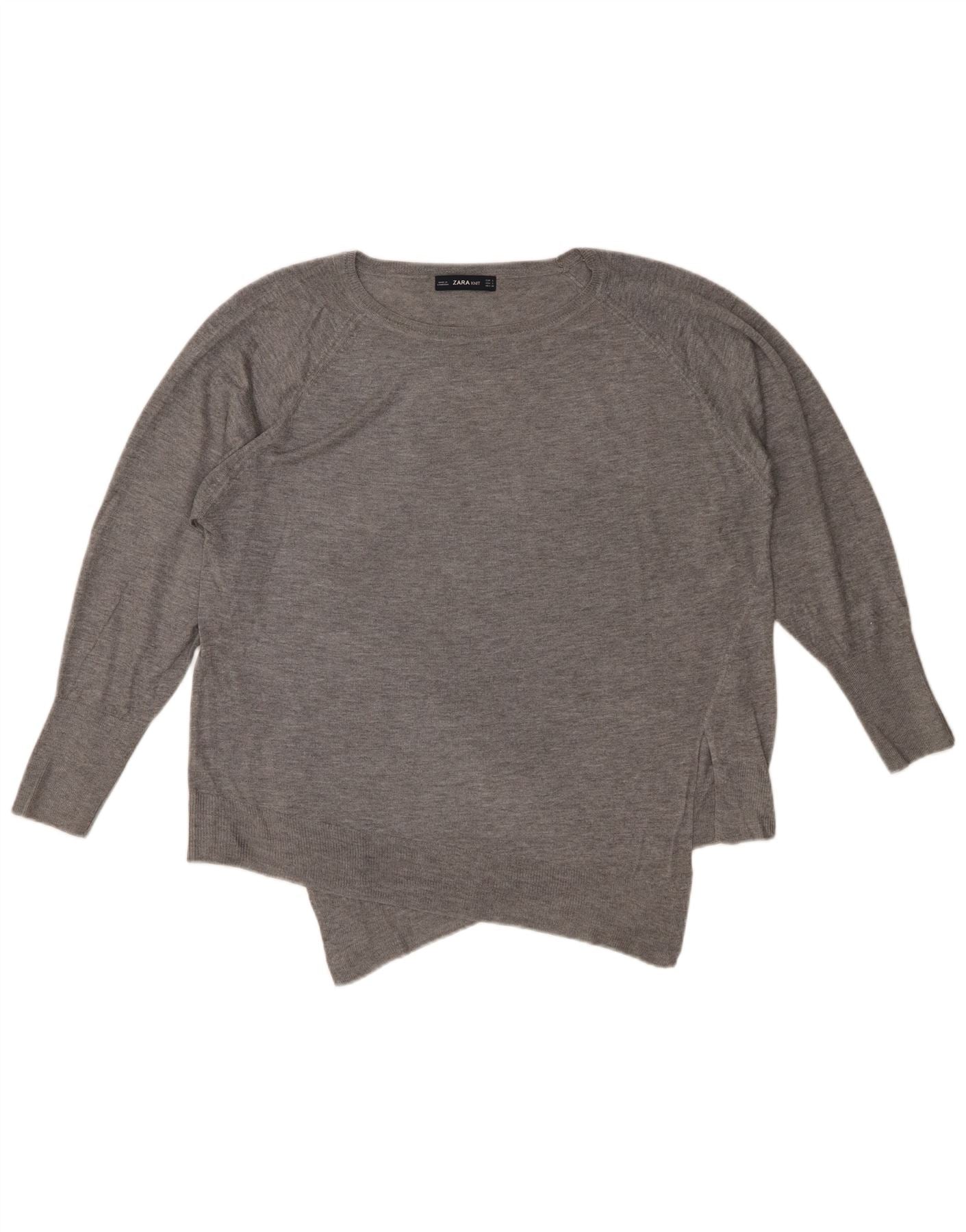 Zara - Jersey holgado con cuello barco para mujer, talla 40, talla pequeña, viscosa gris