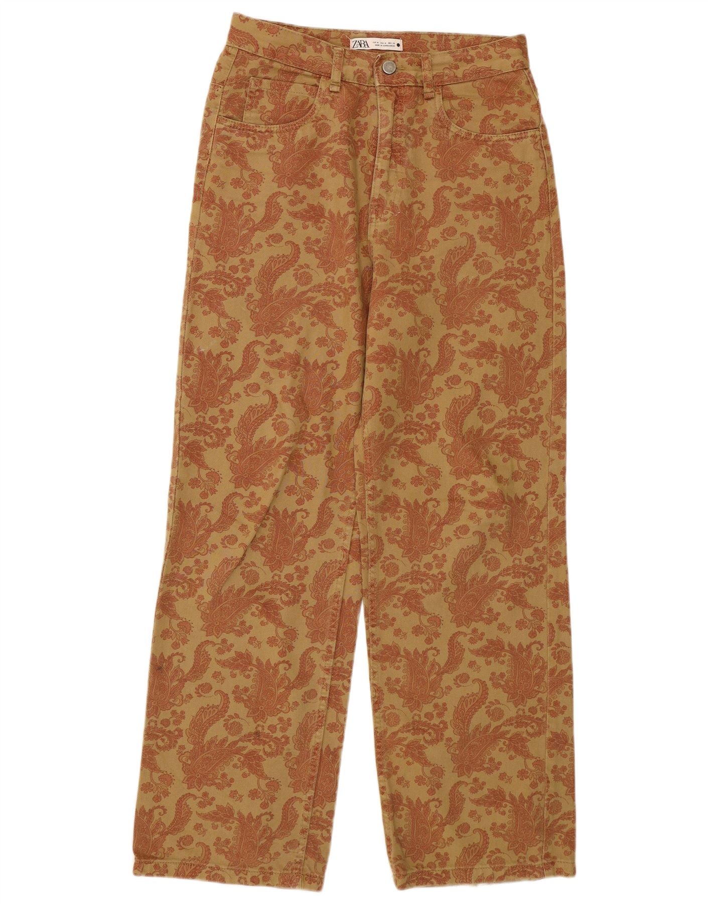 Zara Mujer Pantalones Casuales De Corte Suelto Mediano W28 L30 Marrón Paisley
