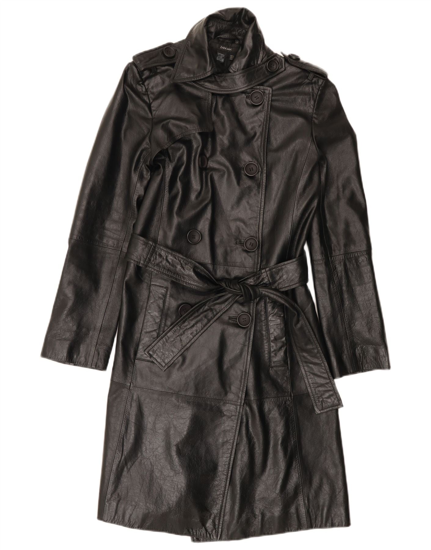 Zara Abrigo De Cuero Militar Para Mujer UK 10 Small Cuero Negro