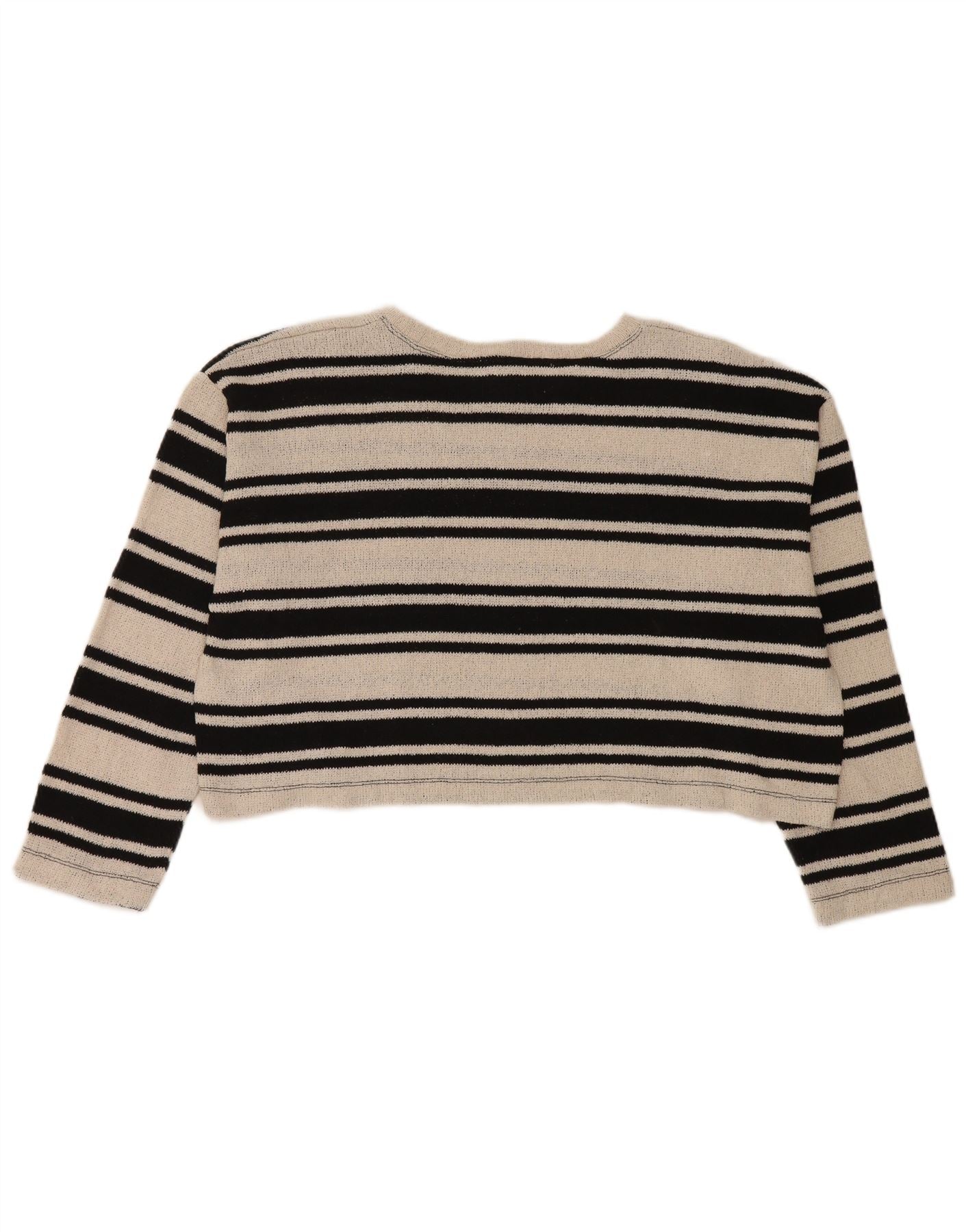 - Descripción de IA: Este jersey tipo jersey para mujer de Zara está confeccionado con un punto ligero de mezcla de algodón. Presenta un clásico escote redondo y manga larga. La tela beige está adornada con atrevidas rayas negras, creando un patrón llamativo. Su corte moderno ofrece una silueta contemporánea. Este diseño de jersey garantiza un uso sin esfuerzo y un ajuste regular cómodo.