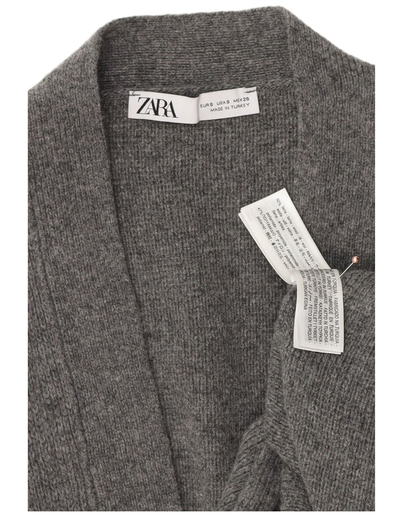 ZARA Suéter tipo cárdigan extragrande para mujer UK 10 Small Grey Cashmere