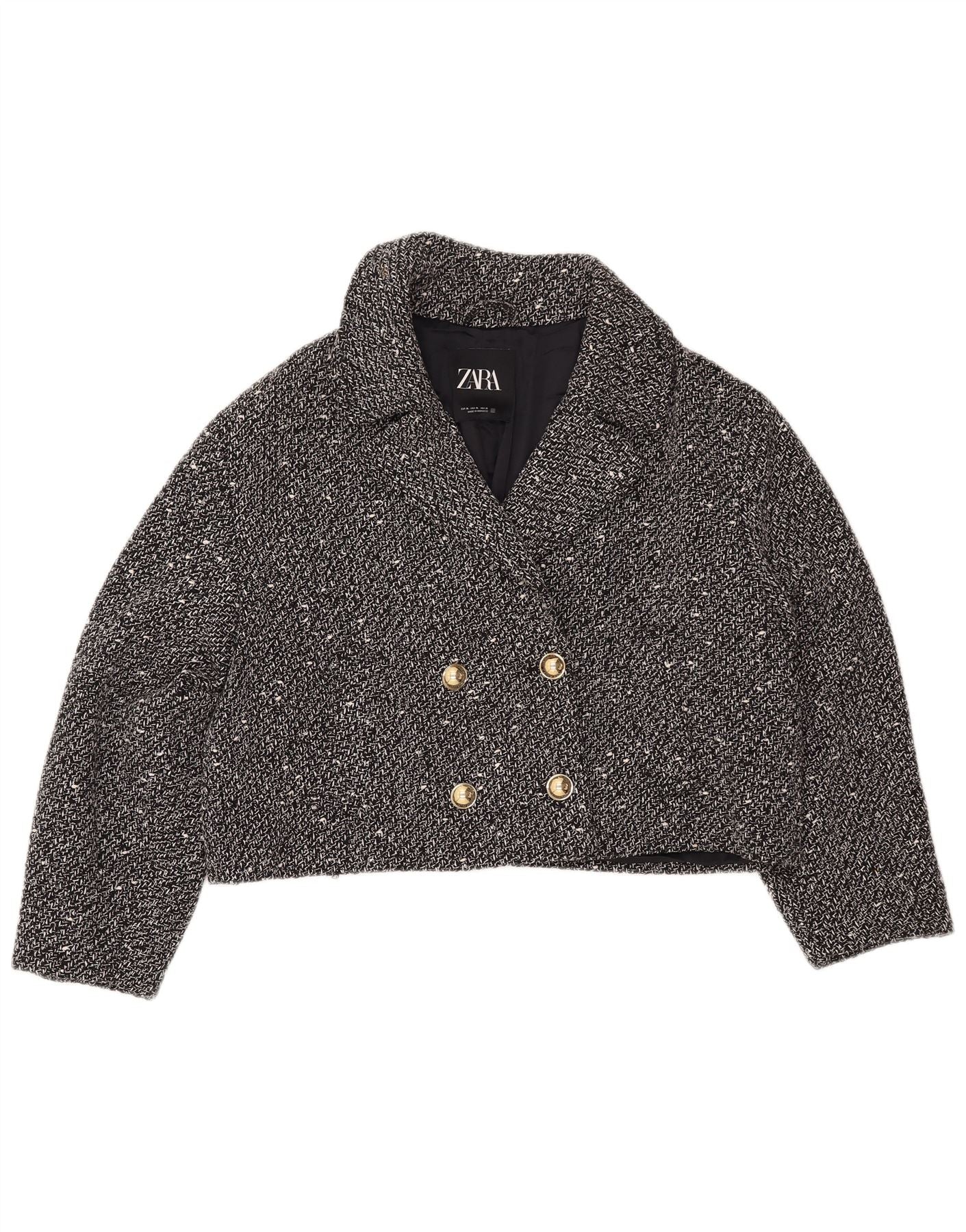 ZARA Mujer Chaqueta Corta Extragrande UK 40 XL Negro Moteado