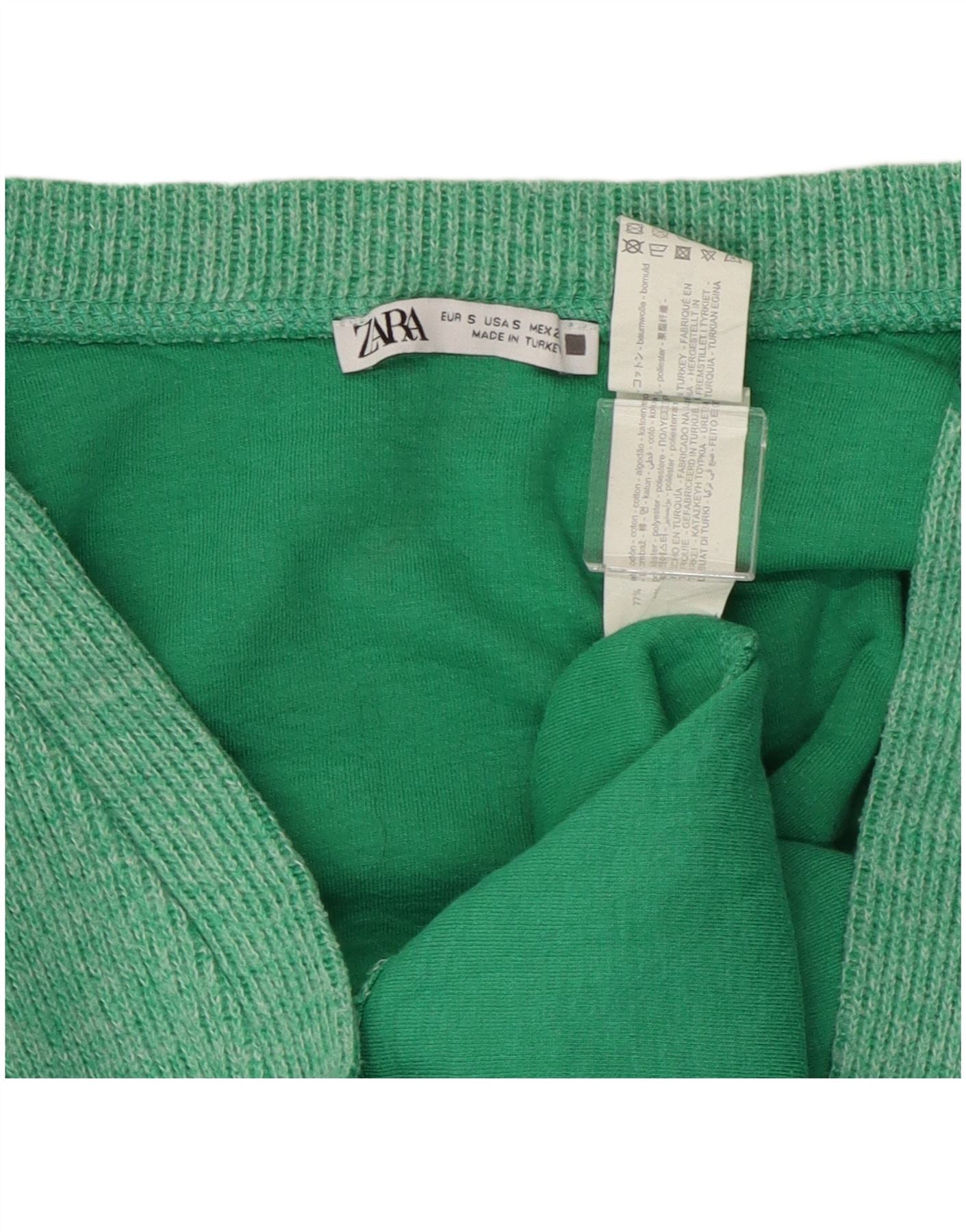 ZARA Mujer Suéter Cárdigan Corto Extragrande UK 10 Small Algodón Verde