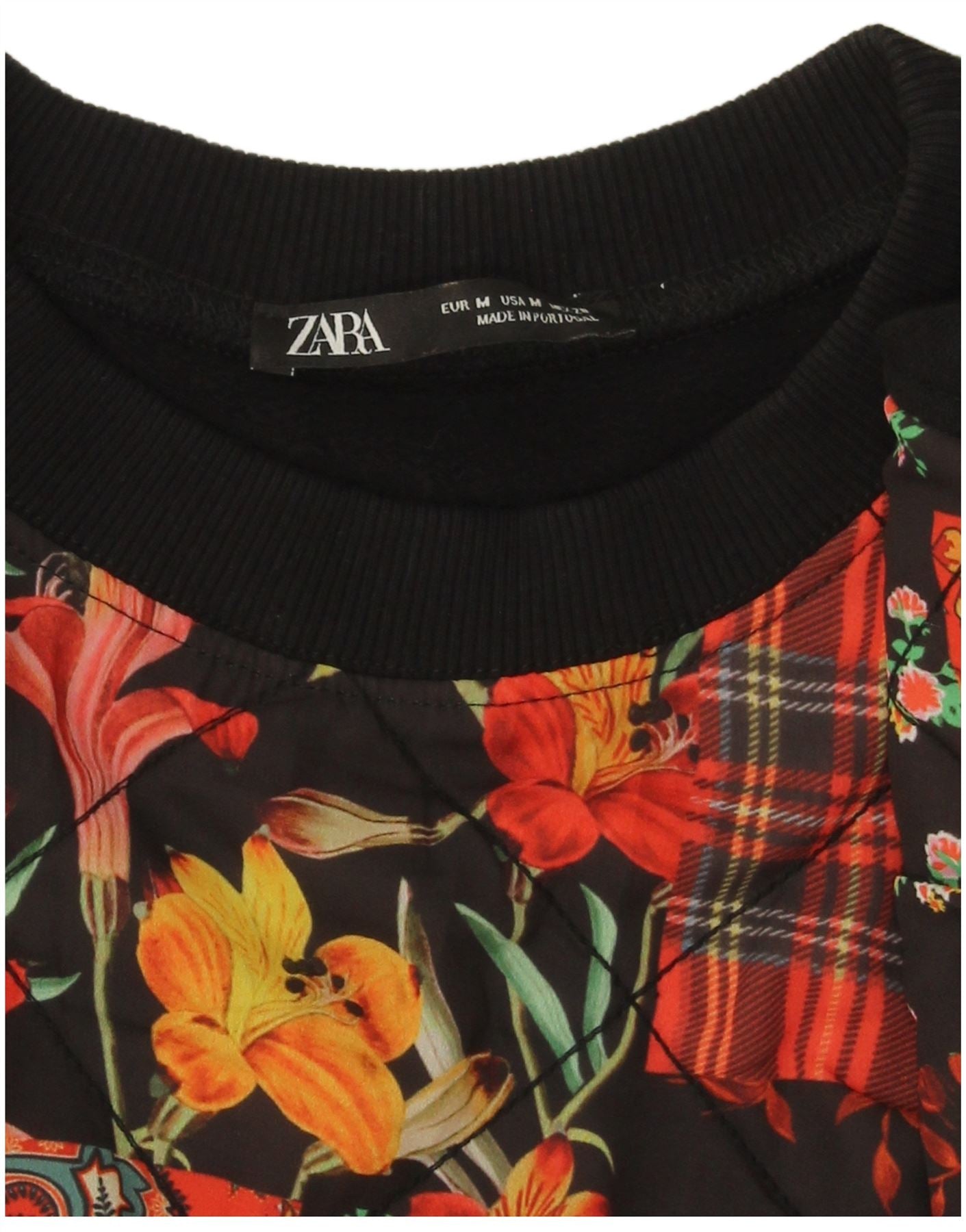 Zara Mujer Sudadera Corta De Gran Tamaño Jersey UK 44 Medium Black Patchwork