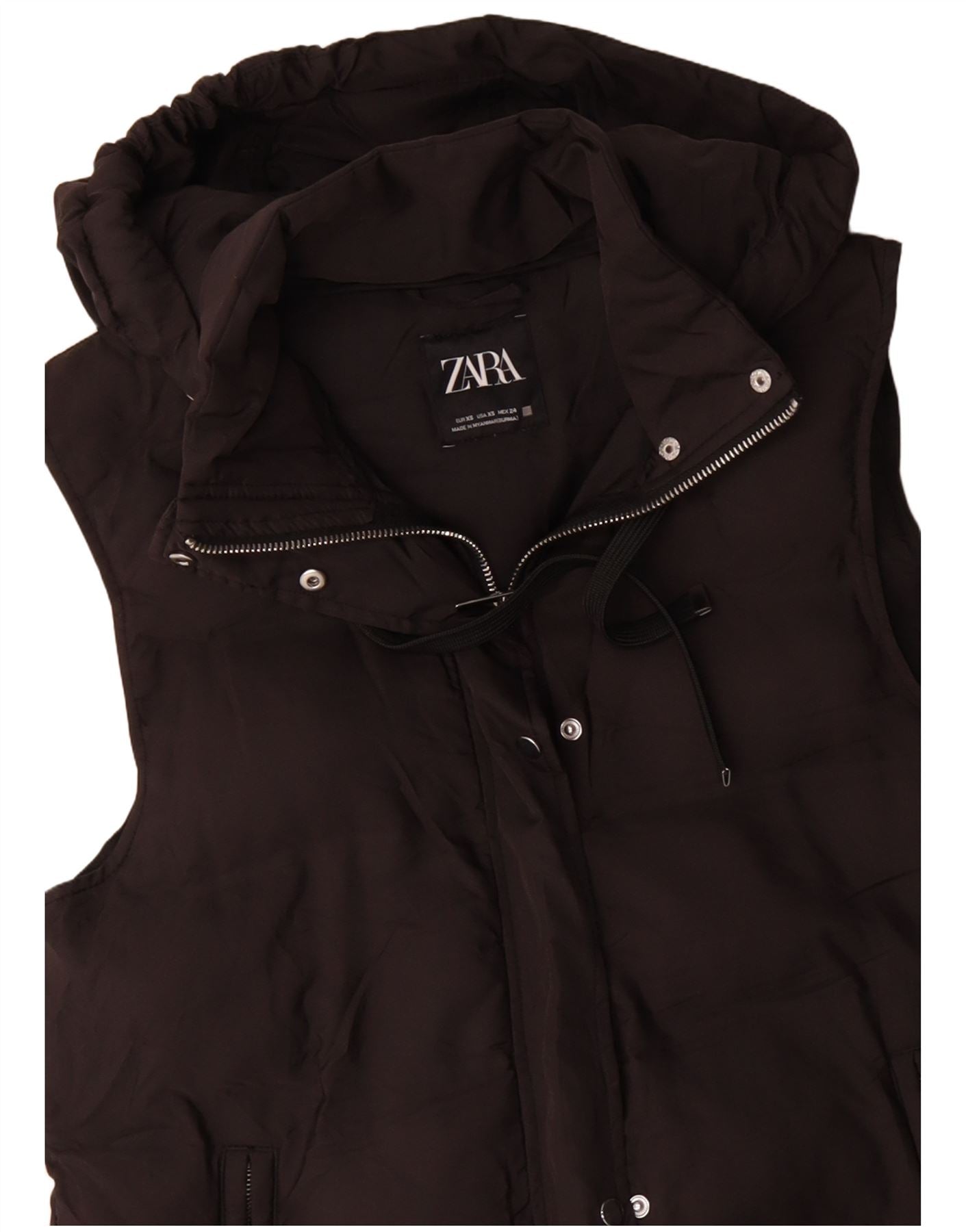 ZARA Chaleco acolchado largo con capucha extragrande para mujer UK 6 XS Marrón Poliéster