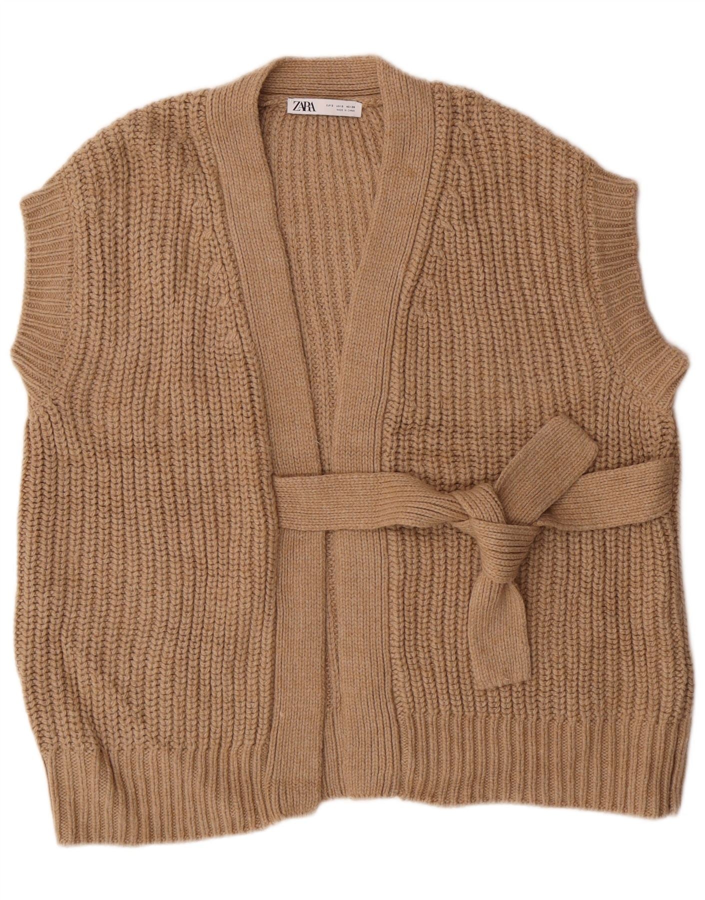 ZARA Suéter tipo cárdigan extragrande sin mangas para mujer UK 40 Small Marrón