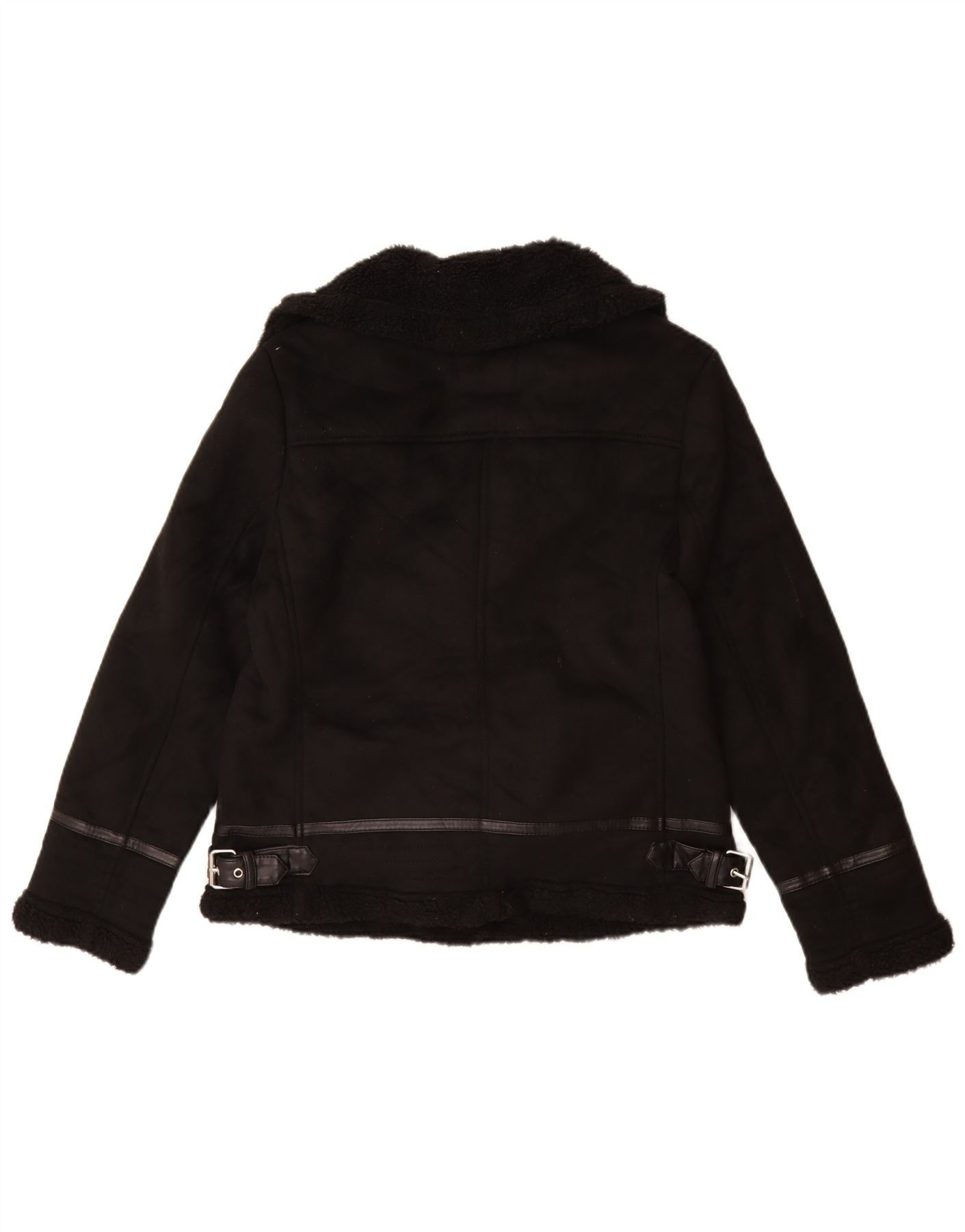 ZARA Mujer Sherpa Biker Jacket UK 44 Mediano Negro Poliéster