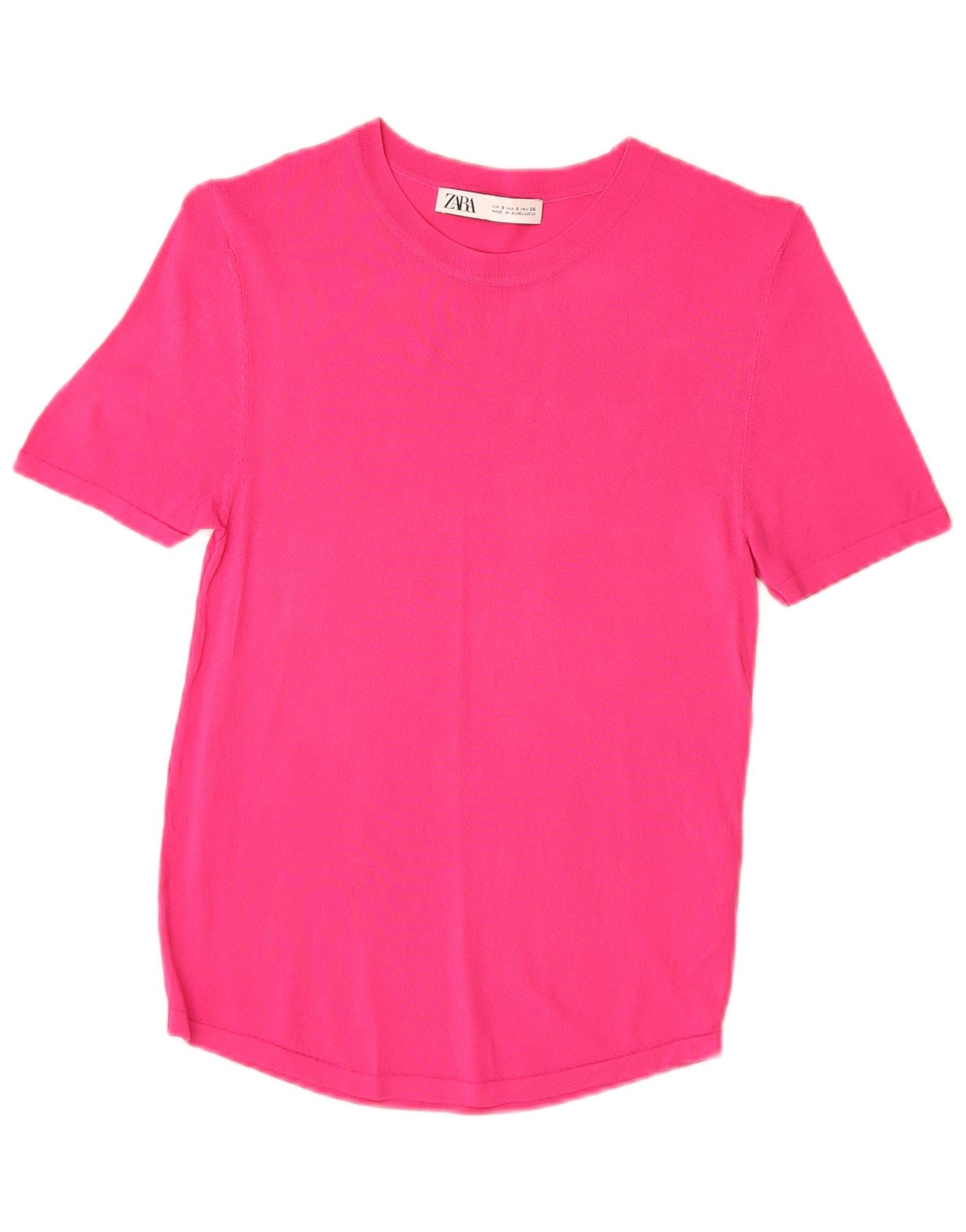 ZARA Suéter tipo jersey de manga corta con cuello barco para mujer UK 8 Small Viscosa rosa