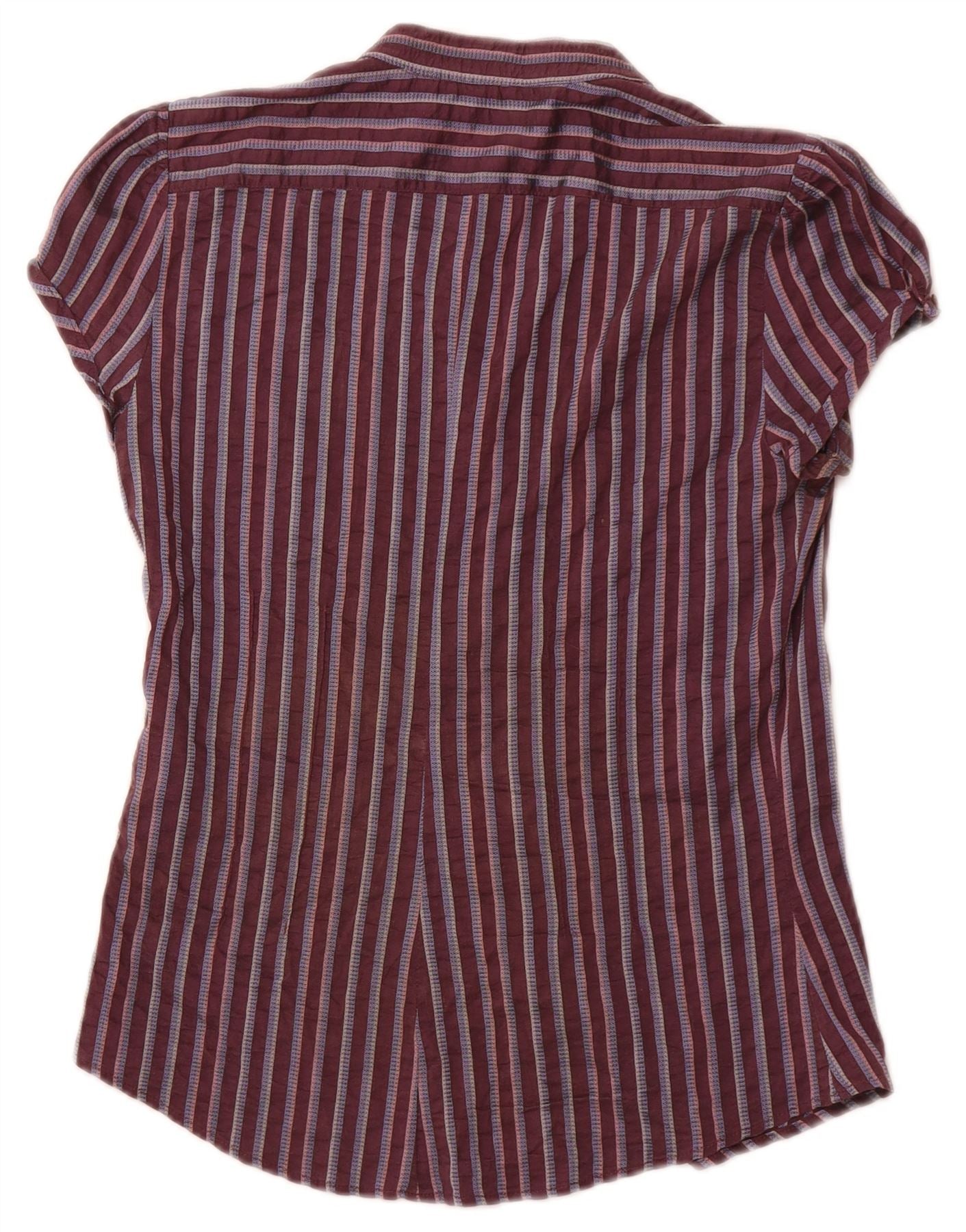 ZARA Blusa Camisa Manga Corta Mujer UK 40 Small Borgoña Rayas Algodón