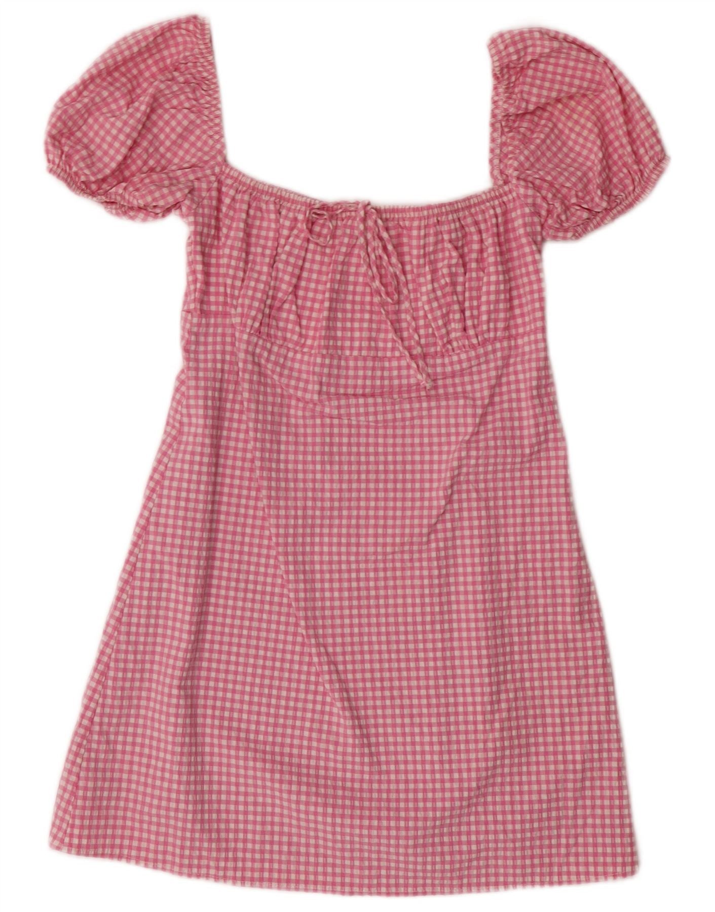 Zara Vestido veraniego de manga corta para mujer UK 42 Medium Pink Gingham Bohemian