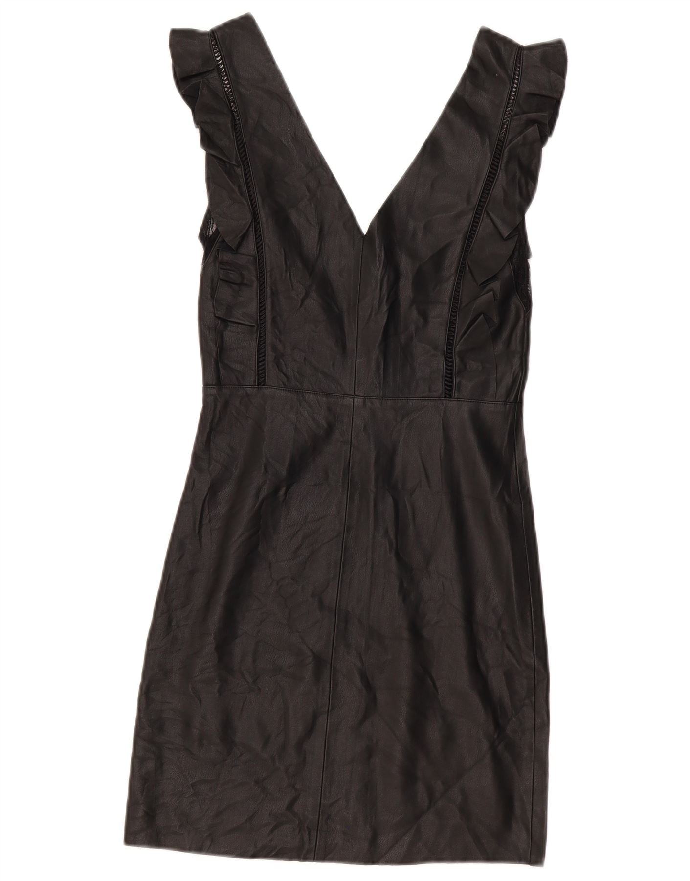 ZARA Mujer Vestido tubo de cuero sin mangas UK 4 XS Negro