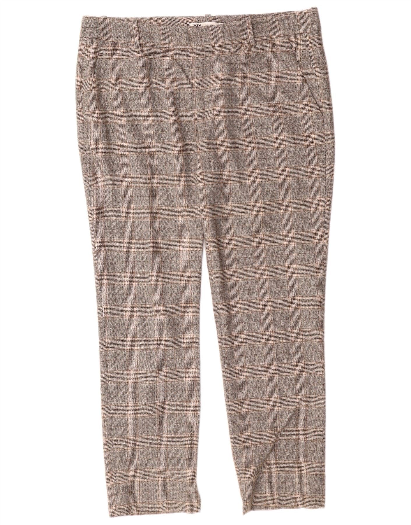 ZARA Pantalón Chino Slim Fit para Mujer EU 42 Large W32 L27 Cuadros Grises