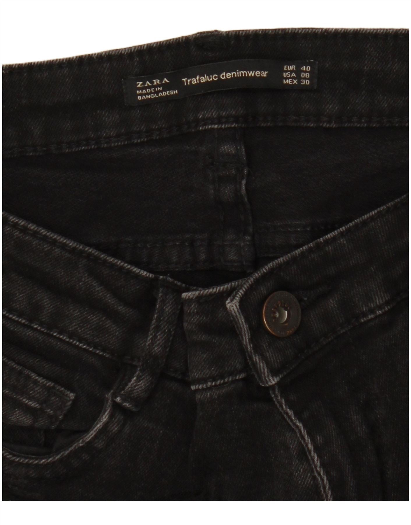 ZARA Mujer Vaqueros Slim EU 40 Medium W30 L28 Negro