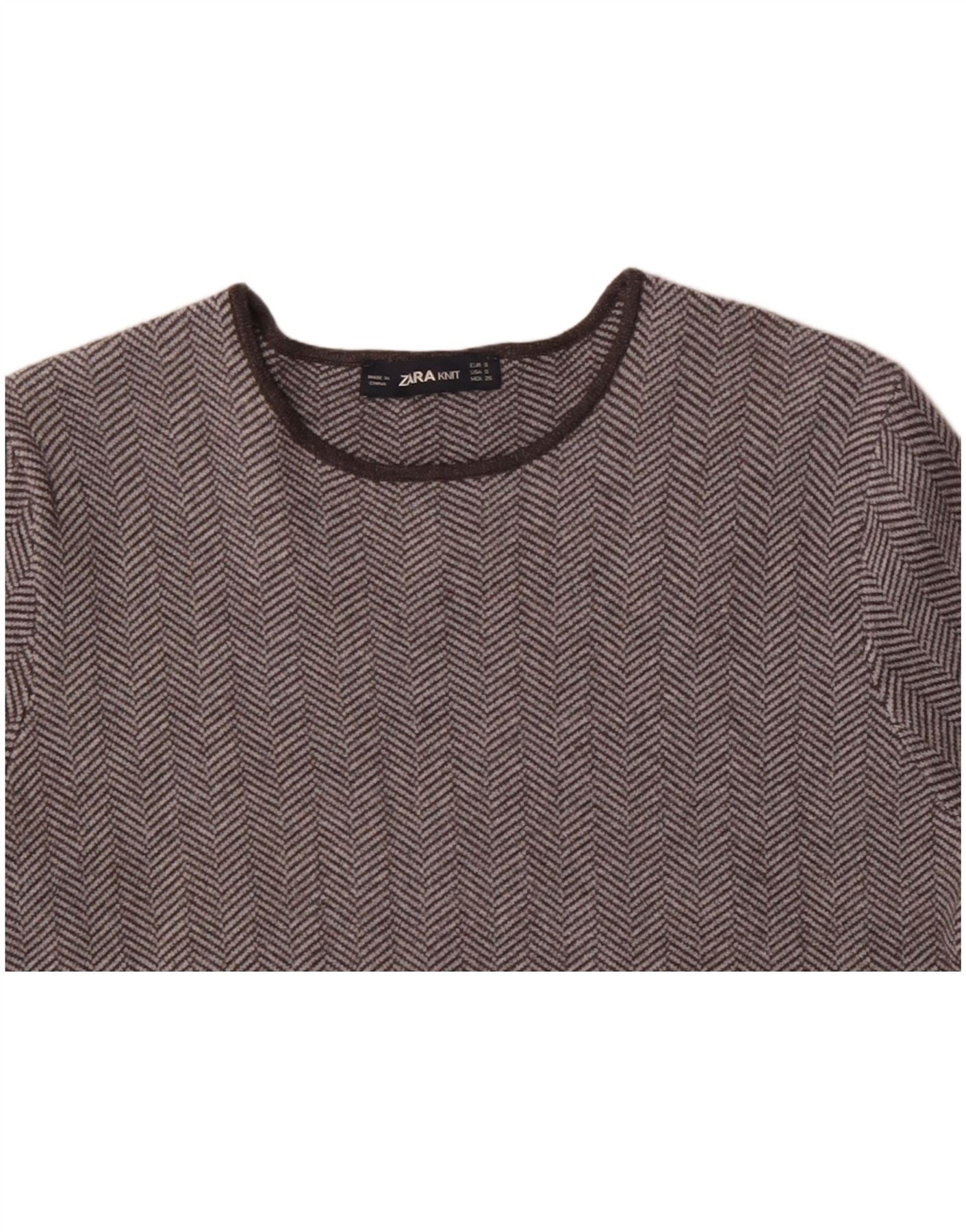 ZARA Camiseta Mujer Top UK 10 Small Gris Espiga Viscosa