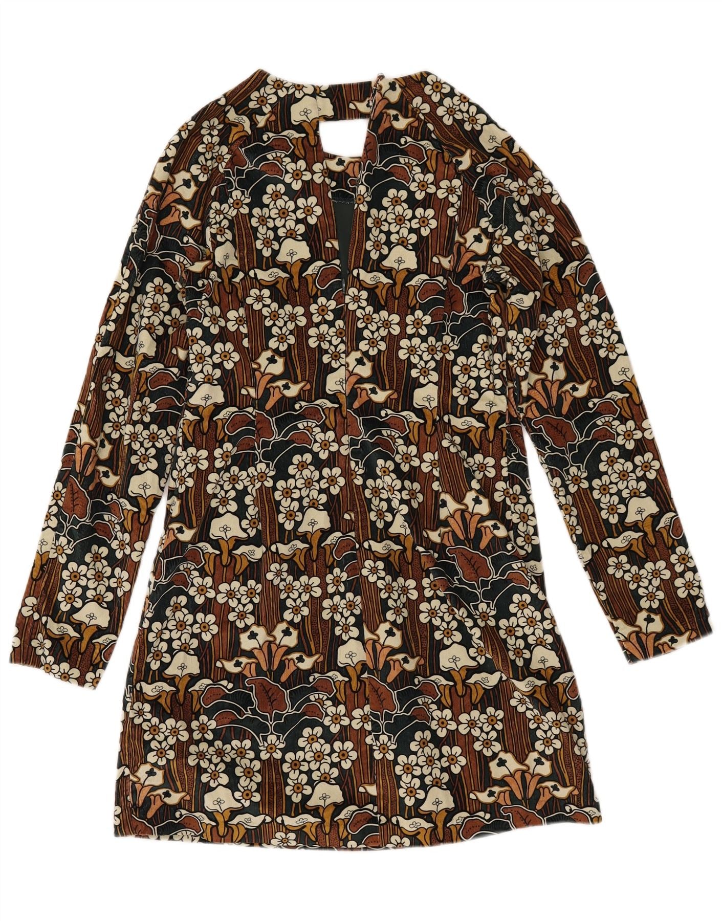ZARA Mujer Trafaluc Vestido tubo de manga larga UK 44 Grande Marrón Floral