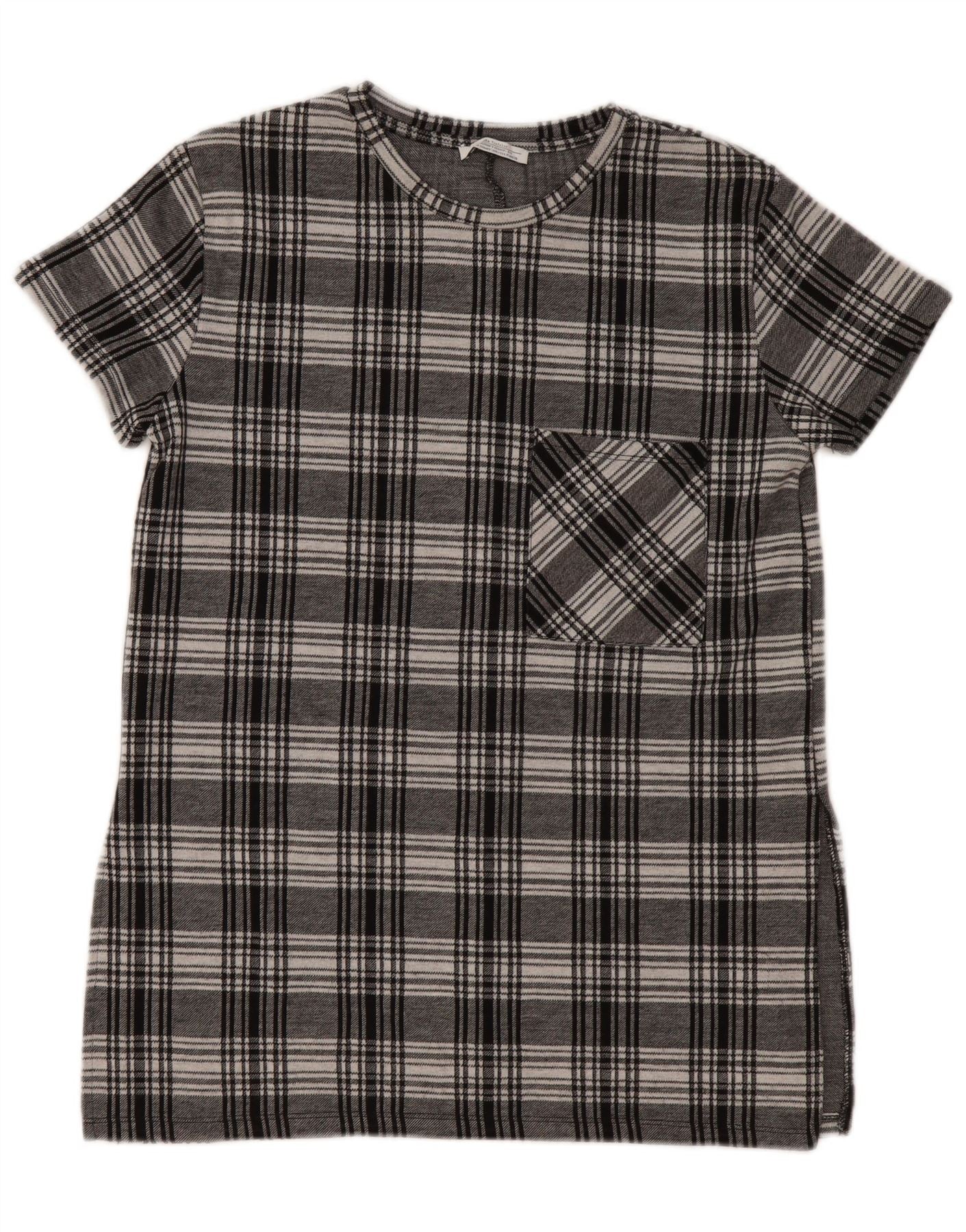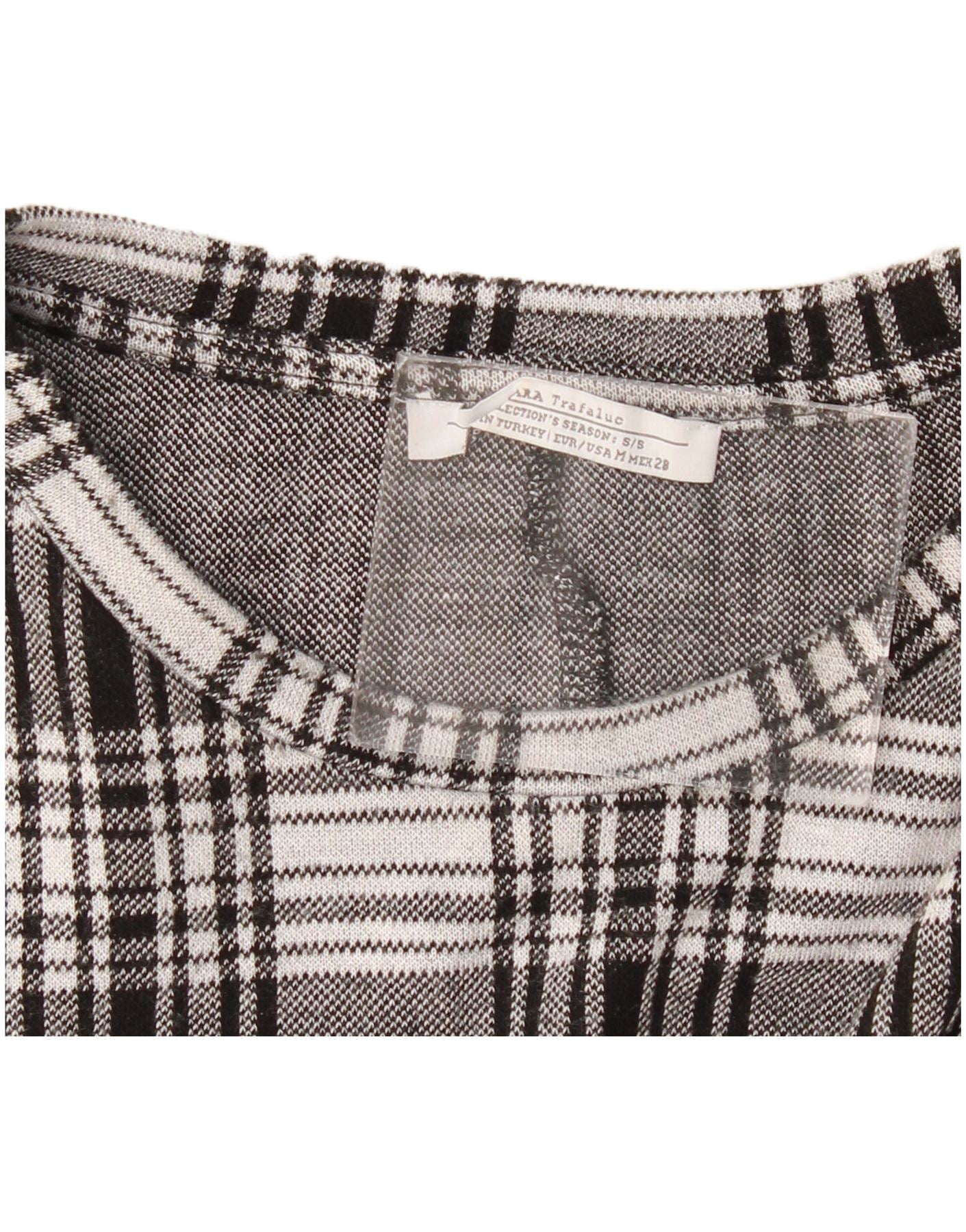 ZARA Mujer Trafaluc Túnica Top UK 10 Small Grey Check