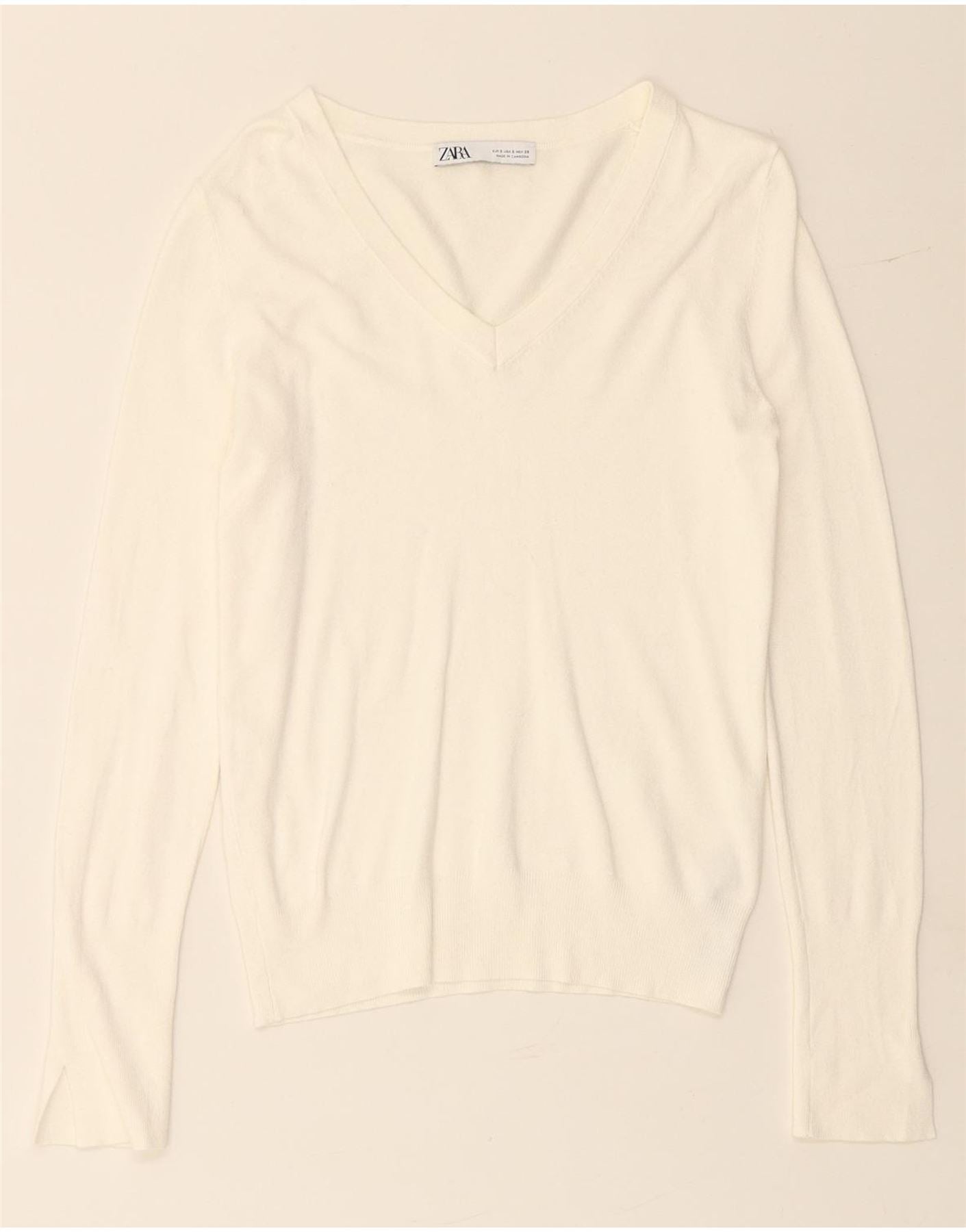 ZARA Jersey con cuello en V para mujer UK 10 Small Viscosa blanca