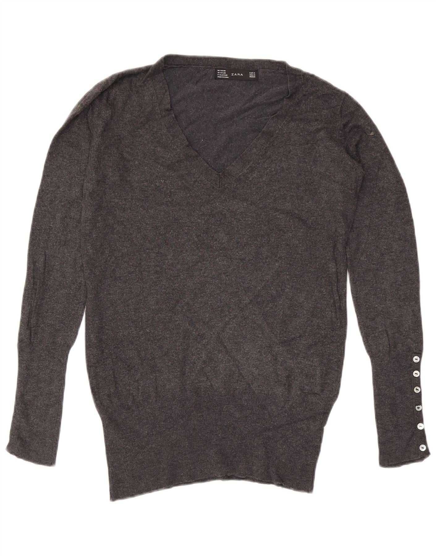 ZARA Jersey con cuello en V para mujer UK 44 Rayón gris medio